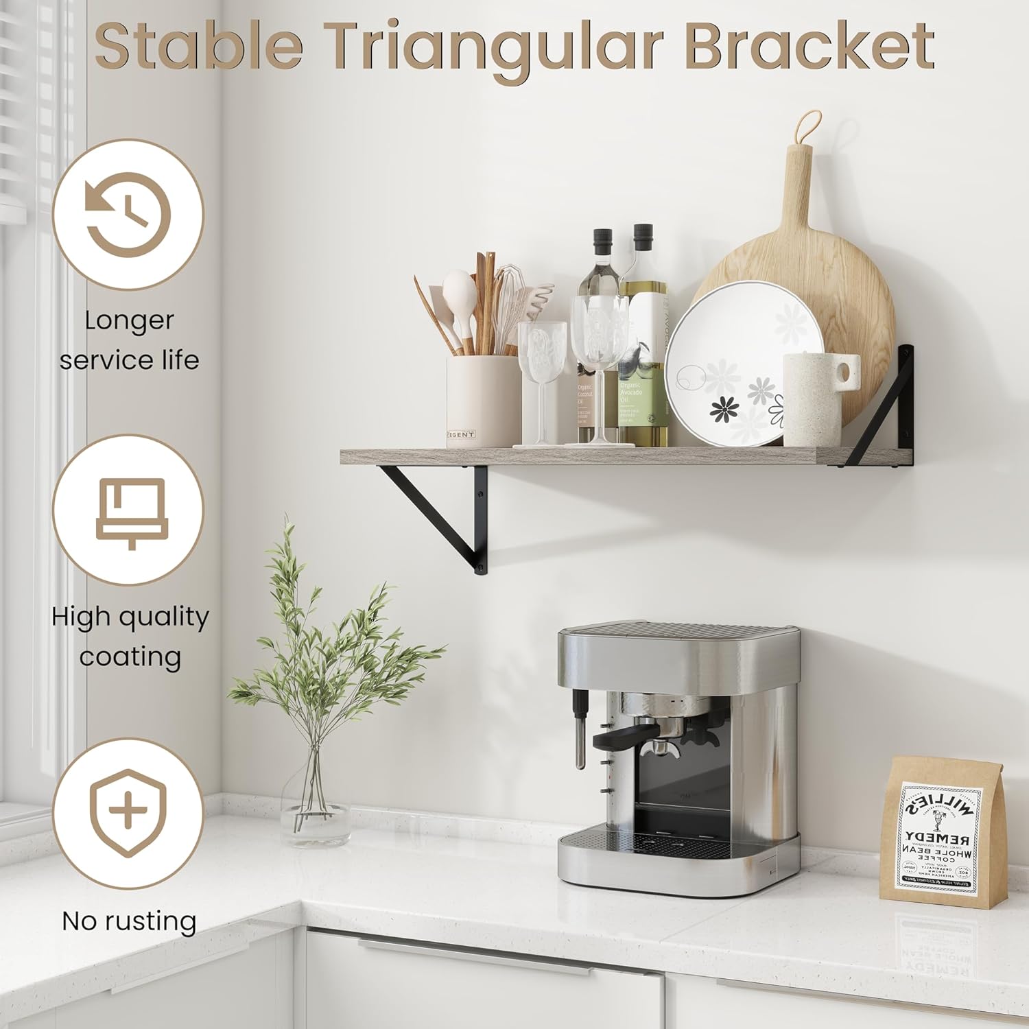 - Large Floating Shelves: Our versatile rustic wall shelves measure 24&12 inch floating shelves, offering generous storage or display space for any room in your home—be it the kitchen, living room, bedroom, bathroom, laundry room, and so on. With ample surface area, you can easily store or display items like books, collectibles, plants, crafts, photos, laundry supplies, and more.
