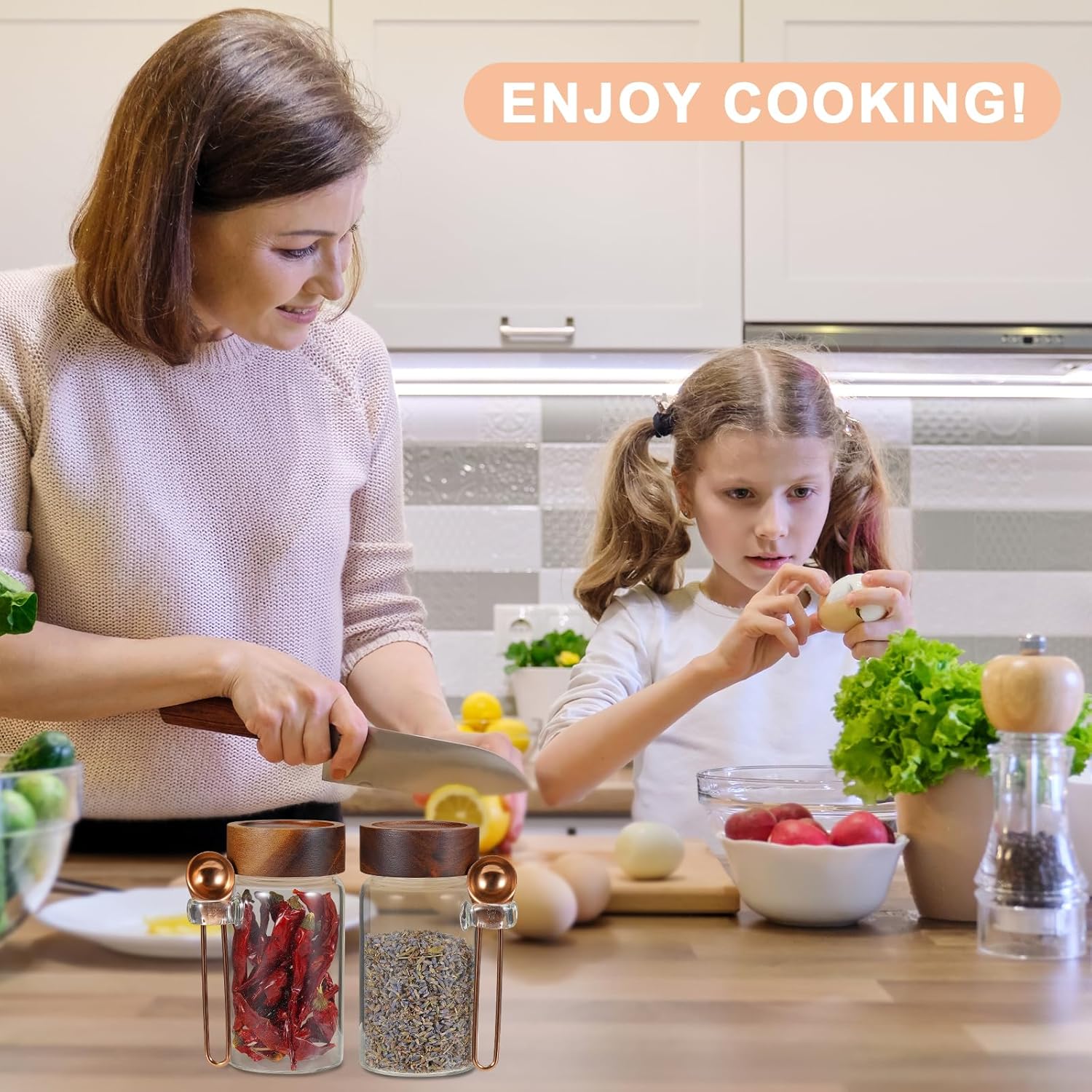Glass Coffee Jars Spice Jar Round Storage Canister with Wooden Lid Clear Glass Food Jar for Pantry Sugar Tea Coffee Bean Spice Nuts Cookies Bath Salts (2×250ml(8.4oz) with scoop)