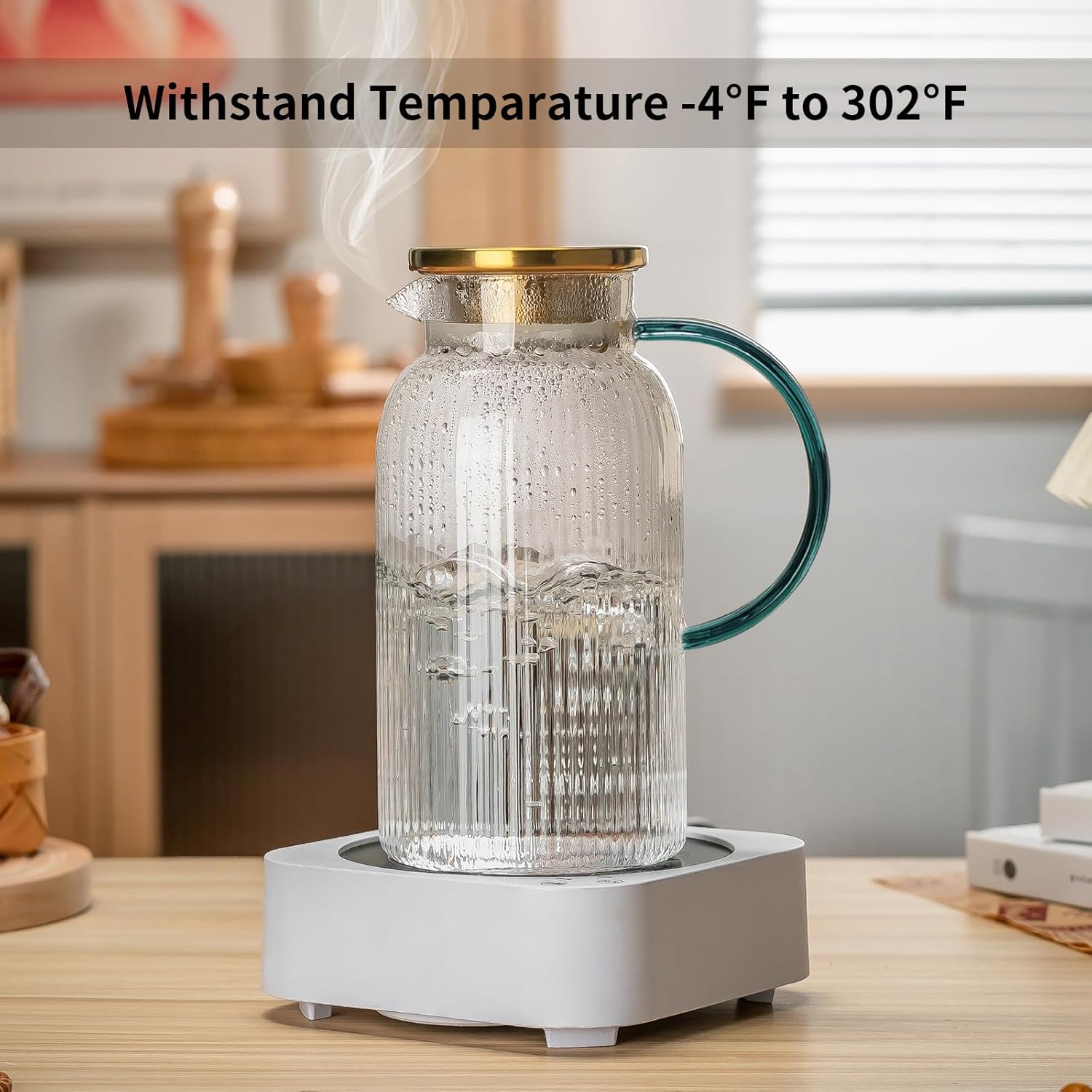 - 【CLASSIC VERTICAL STRIPES DESIGN】Buaic water pitcher is made of heat-resistant borosilicate glass, which can withstand temperatures from -20°C ~150°C/-4°F~302°F. Its lead-free and BPA-free construction makes it a healthier choice in your daily life for iced tea, margaritas, juice, coffee, sangrias, wine, etc. classic vertical stripes design works with traditional or casual place settings. It's not only a pitcher, but also a beautiful decoration on the table.