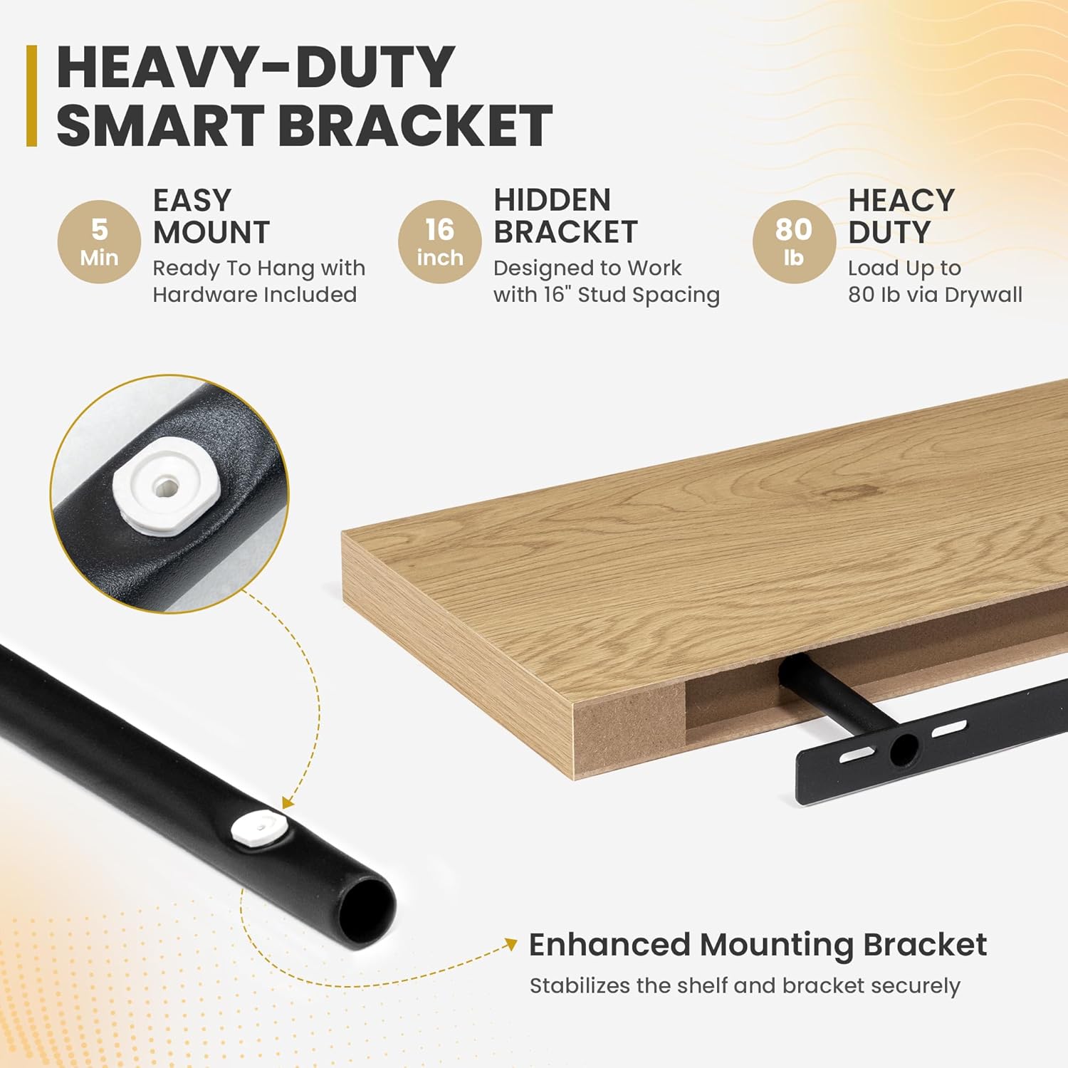 - [ROBUST & SECURE MOUNTING]: Equipped with a sturdy, hidden mounting bracket, these 48-inch floating shelves ensure solid support for your items. Designed for easy and secure installation, they come with all necessary hardware for a firm, wobble-free setup, allowing you to confidently display decor, photos, or functional items with style.