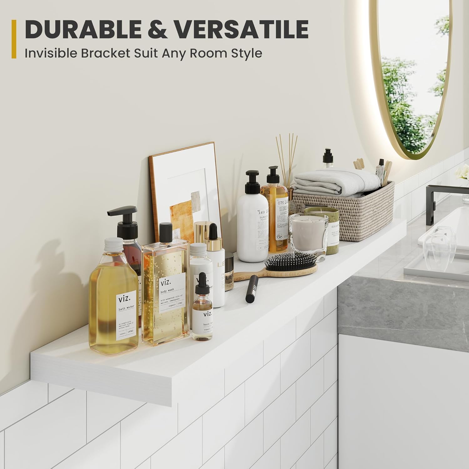 - [ROBUST & SECURE MOUNTING]: Equipped with a sturdy, hidden mounting bracket, these 36-inch floating shelves ensure solid support for your items. Designed for easy and secure installation, they come with all necessary hardware for a firm, wobble-free setup, allowing you to confidently display decor, photos, or functional items with style.