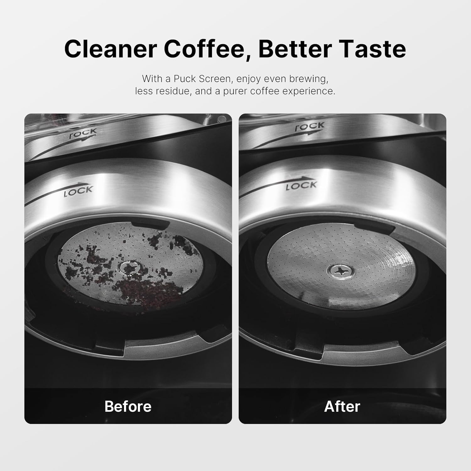 - Enhanced Coffee Brewing Experience – The puck screen ensures even water flow, reducing coffee splashes and minimizing coffee grounds on the machine for a cleaner brewing process.