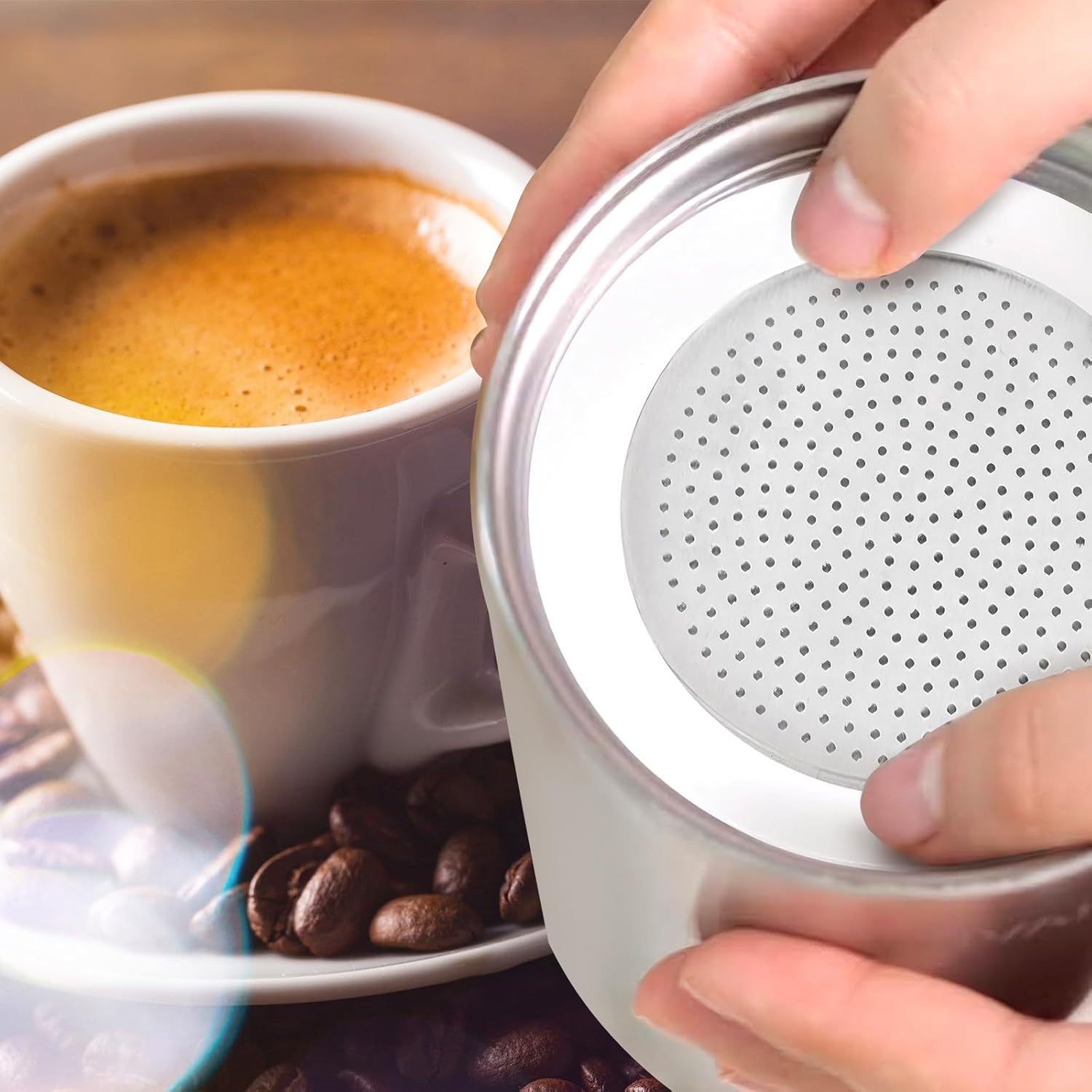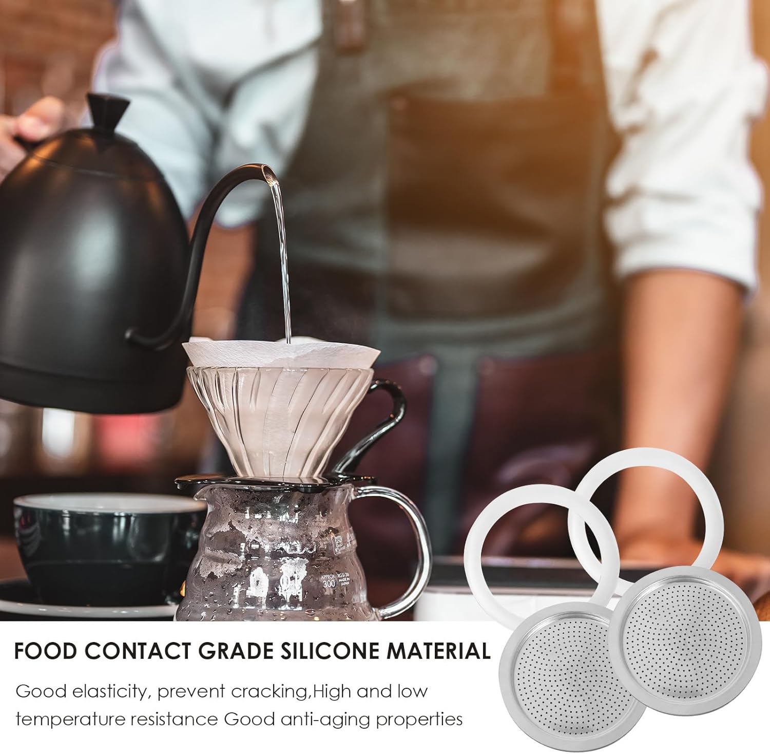 - Material: Coffee gasket made of silicone, soft and seal well. Filter screens made of aluminum, sturty and long-lasting