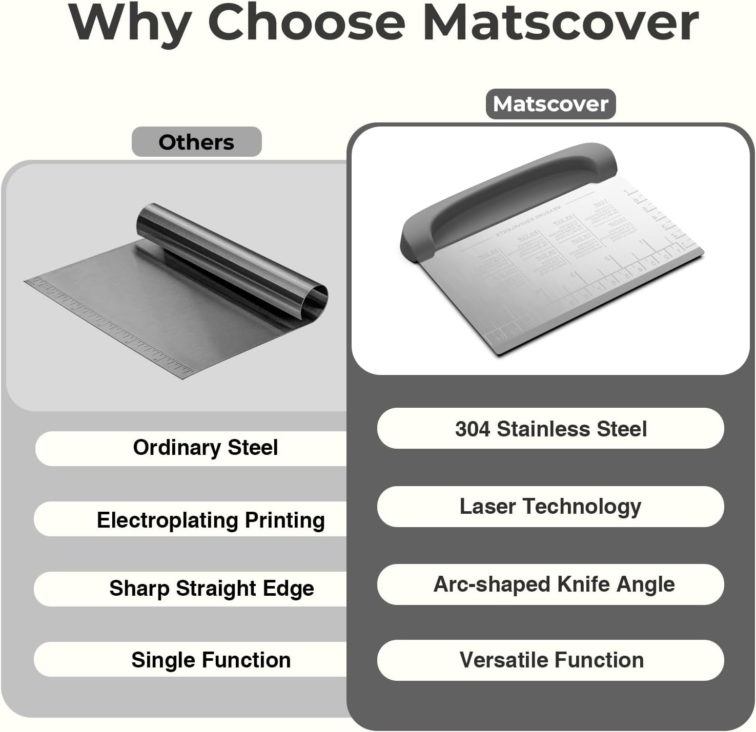 - ✔ [𝗣𝗘𝗥𝗙𝗘𝗖𝗧 𝗚𝗜𝗙𝗧] Our food scraper stainless steel set comes packaged in a beautiful box, making it an ideal gift for cooking and baking enthusiasts, chefs, family and friends. Excellent product quality which is the perfect Matscover experience for you