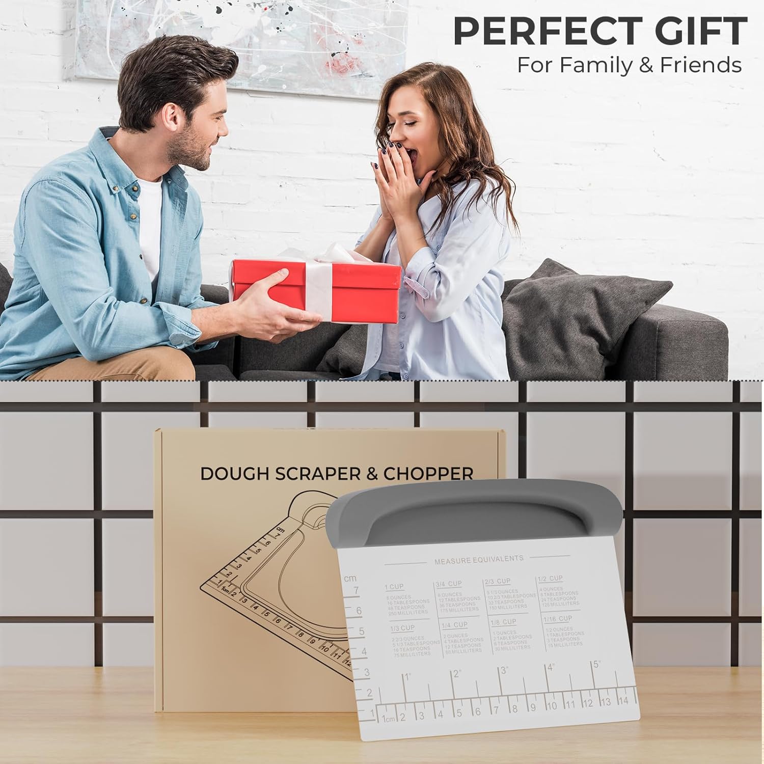 - ✔ [𝗣𝗥𝗔𝗖𝗧𝗜𝗖𝗔𝗟 𝗗𝗘𝗦𝗜𝗚𝗡] Dough scraper for baking is designed with measurement markings and conversion chart which use advanced laser-engraved technology for easily measuring