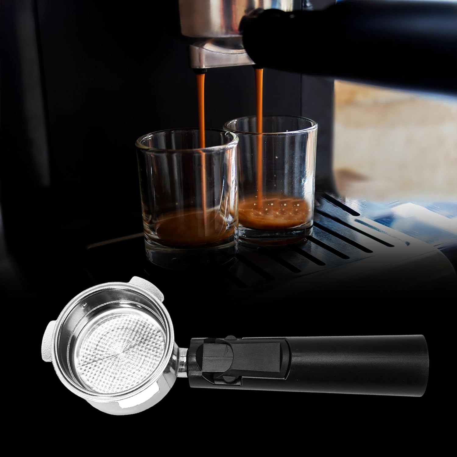 - The ergonomic design of the coffee handle provides a comfortable grip, and its lightweight build reduces wrist strain during extraction. Crafted with a plastic handle and stainless steel head, this portafilter is sturdy, thick, and rust-free, ensuring long-lasting durability.
