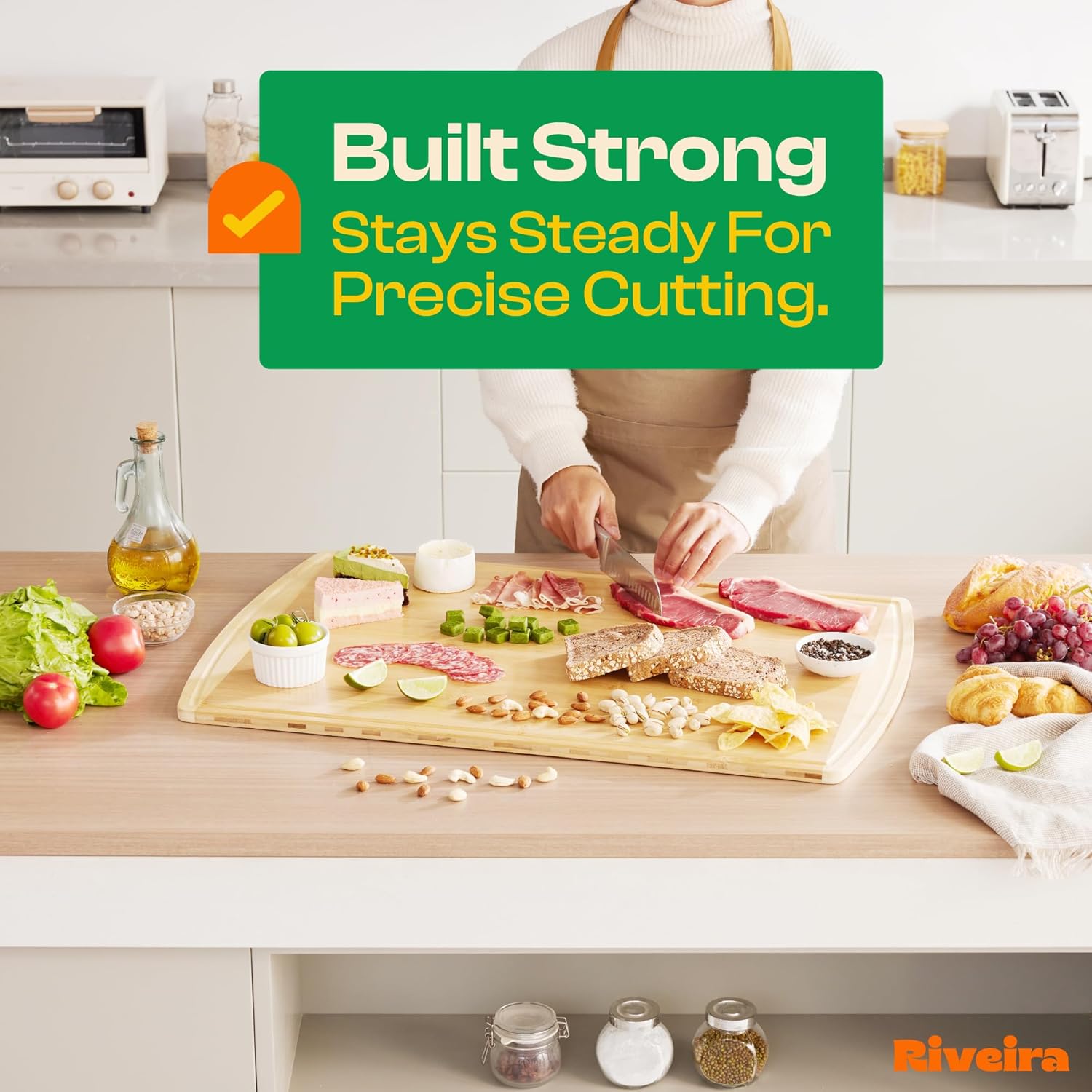 Riveira Two Tone Bamboo Wood Cutting Board – Gourmet Bamboo Grandeur: 20 x 30 Wooden Cutting Board – Wooden Cutting Boards For Kitchen Decorative – Innovative Juice Grooves Wooden Chopping Board