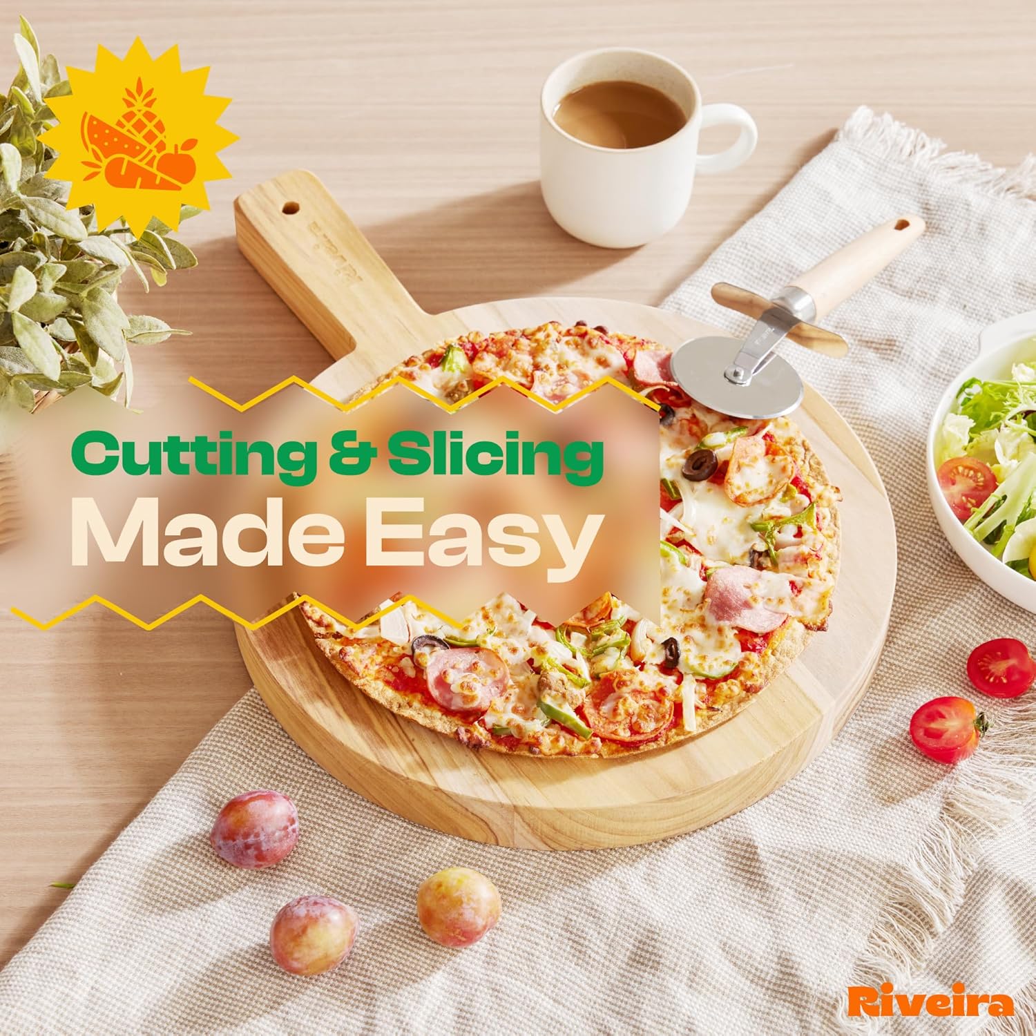 - Premium Crafted Teak — Take a detour from traditional kitchen aesthetics with this teak wood board crafted from 100% natural teak. Beyond being an unconventional and eco-friendly choice, the chopping board wood proudly showcases the environment friendly and organic teak. This wood cutting boards for kitchen counter adds an unexpected touch of confidence and style to your once-orderly culinary space. Riviera's wooden chopping boards for kitchen will be there for you for many years to come.