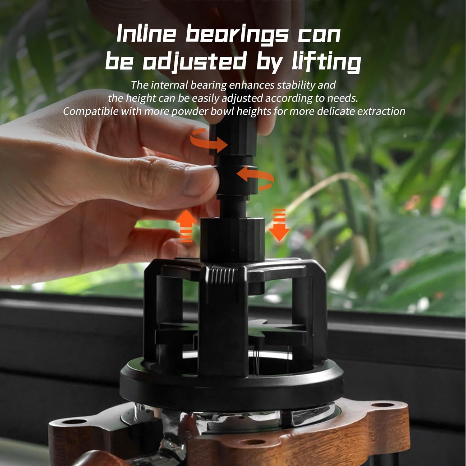 - 【Smooth Rotation and Height Adjustable】Embedded bearing structure greatly reduces rotational resistance. The distributing height is adjustable, compatible with more filter basket and portafilter for more delicate extraction.