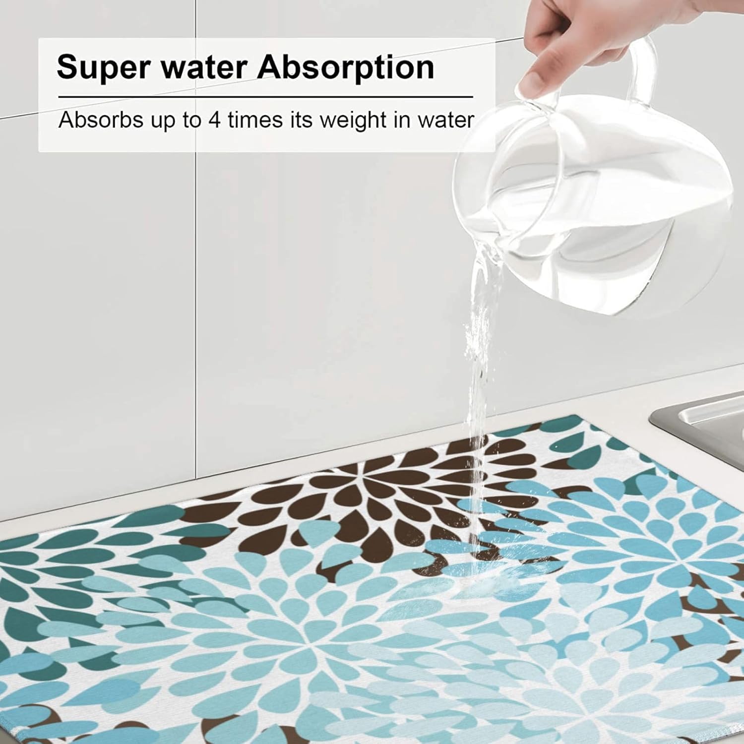 - 【Strongly Absorbent】Our Dish Drying Mat Is A 3-Ply Design Made Of Absorbent Microfiber, Composite Sponge, And Polyester Fabric, The Dish Drying Pad Absorbs 4x Its Weight In Water. Perfect For Air-Drying Dishes, Glasses, Pots, Pans, Bottles, Fruits, And Vegetables