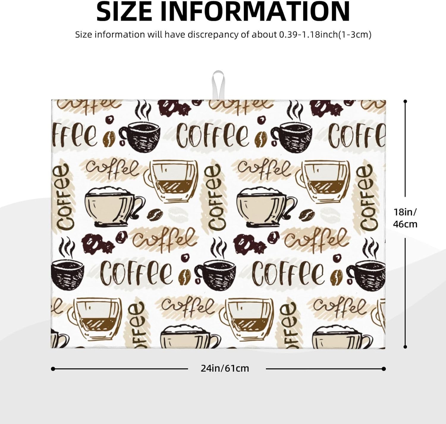 Coffee Dish Drying Mat 18 x 24 Inch, Coffee Drying Mat Absorbent Reversible Microfiber Coffee Kitchen Mat Dish Rack Pad Dish Drainer Mat Brown Coffee Mat for Kitchen Counter Coffee Bar