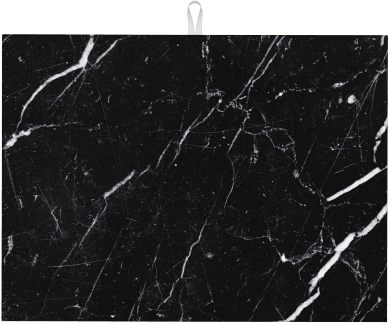 Dish Drying Mat Coffee Bar Mat for Kitchen Counter, Absorbent Dish Rack Pad Hide Stain Coffee Accessories Large Dish Drying Pad, Black Marble 18"x24"