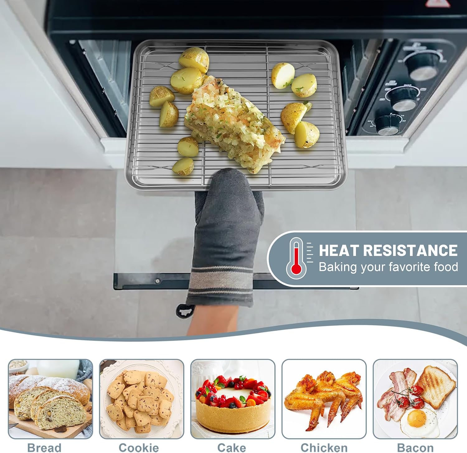 - DISHWASHER SAFE & EASY CLEANING: Sleek surface reduces food sticking for effortless releasing, Cleaning is a breeze - not only easy to wash by hands, but also dishwasher friendly to save your labor and time, Parallel mesh of metal wire rack allows it to be hung on hooks or stacked together for easy storage and space saving