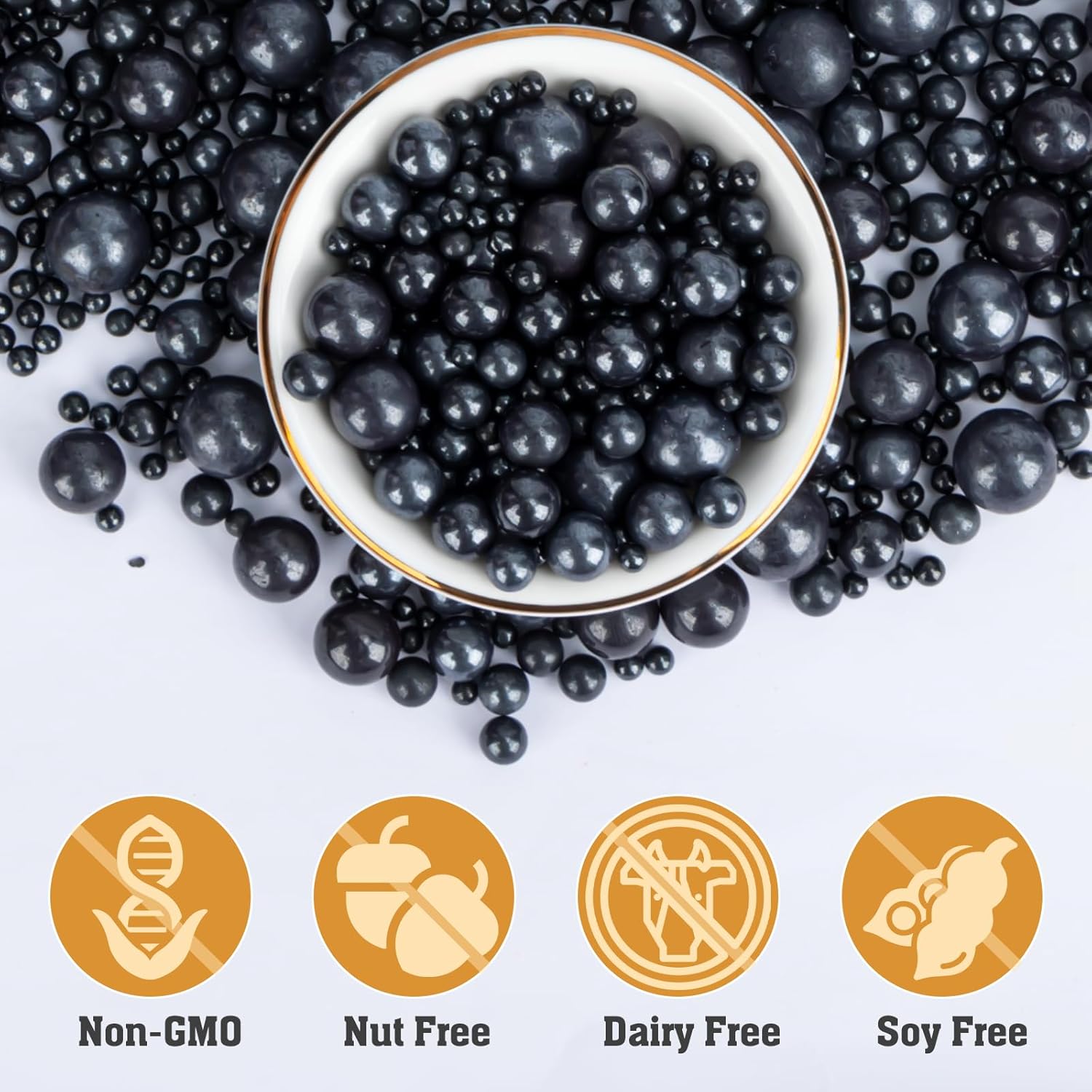 - 【100% Food-Grade Black Sprinkles】: Twisweet black pearl sprinkles are made with international food-grade ingredients and a vegan-friendly formula, free from major allergens (nuts, dairy, gluten). Crafted from natural cane sugar and produced in compliance with FDA guidelines, these sugar sprinkles contain no added preservatives, ensuring they're both delicious and suitable for a variety of diets.