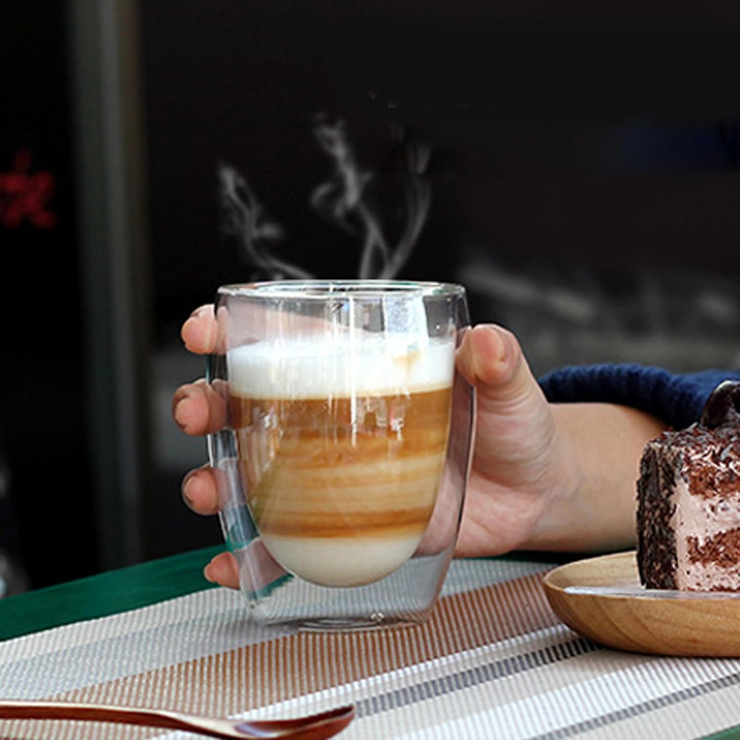 - DOUBLE-LAYER DESIGN FOR PRACTICALITY: This espresso cup features a unique double-layer design that keeps the liquid warm for a long time, whether hot or cold while preventing the outer wall from getting hot and causing your hands to burn when you drink. As the espresso slowly flows into the cup through the coffee machine, the coffee and perfectly churned milk froth float in mid-air like a cloud.