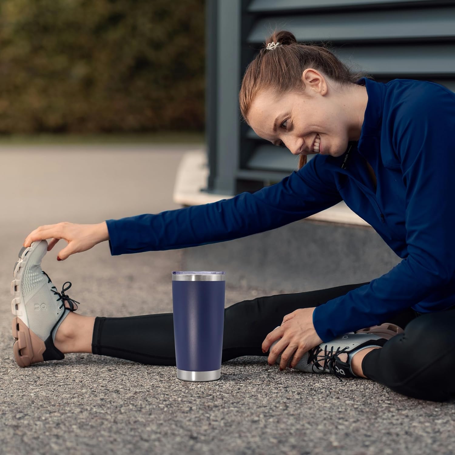 20 oz Tumbler with lid Double Wall Vacuum Insulated Tumblers Stainless Steel Coffee Mug Travel Coffee Tumbler Powder Coated Tumbler Cup Keep Hot&Cold - (Navy 12 Pack)