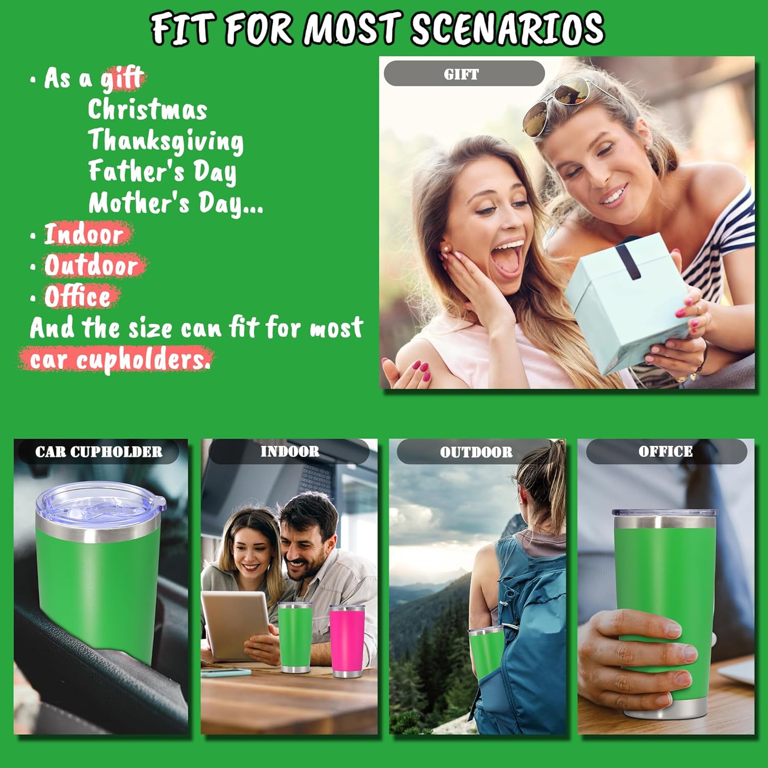 20 oz Tumbler with lid Double Wall Vacuum Insulated Tumblers Stainless Steel Coffee Mug Travel Coffee Tumbler Powder Coated Tumbler Cup Keep Hot&Cold - (Green 6 Pack)