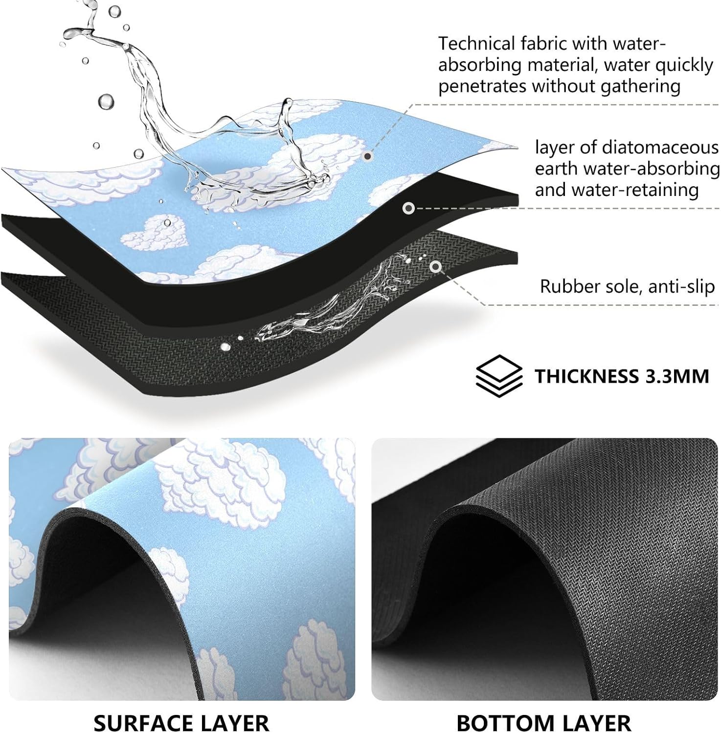 - Super Absorbent: The front side of the kitchen counter mats is made of a super absorbent material that is incredibly absorbent, allowing it to quickly soak up any spills or moisture. Whether you're drying dishes, wiping down countertops, or cleaning up after a coffee brewing session, this mat will effectively absorb liquids, keeping your kitchen clean and dry.