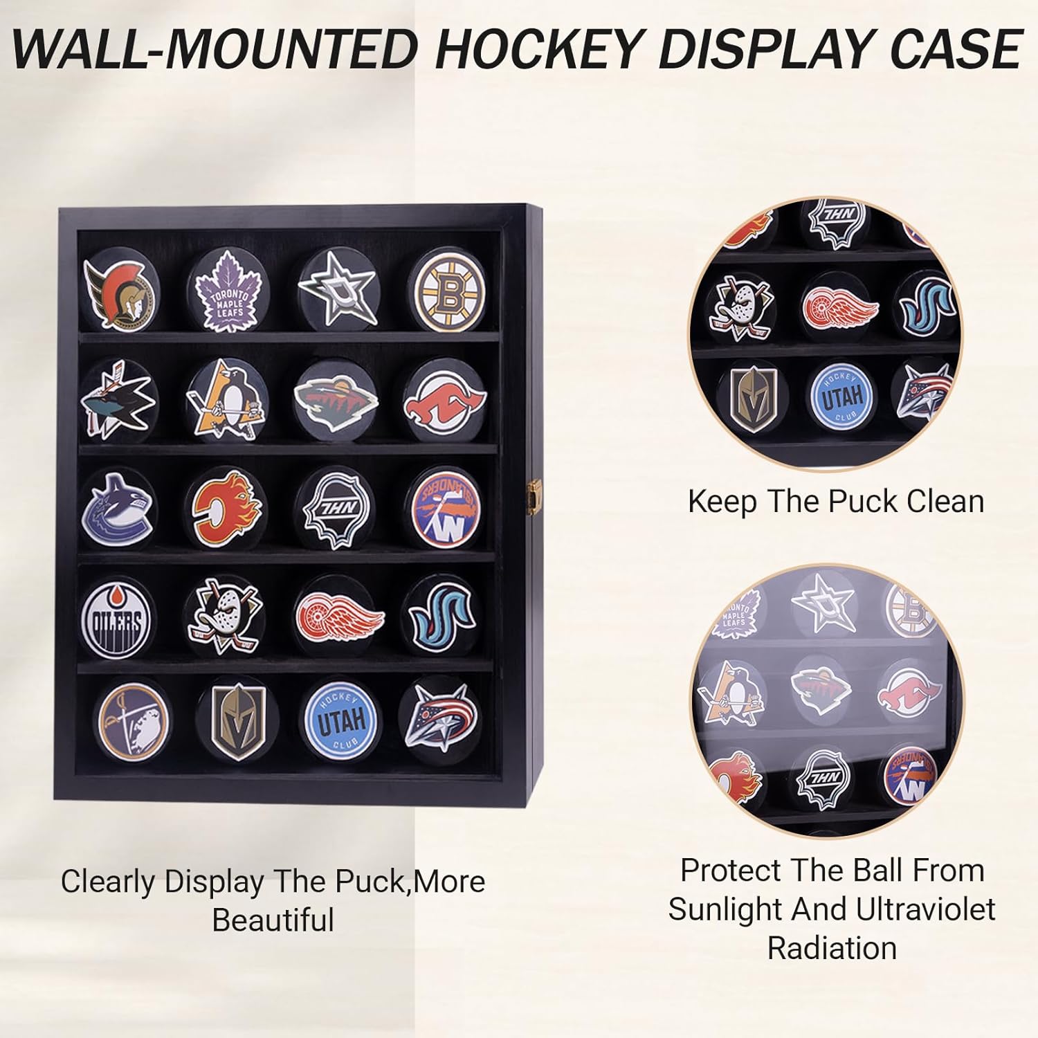 - 【HOCKEY PUCK DISPLAY CASE】: The hockey puck display case can display 20 hockey pucks.The size is 15.4*3.1*17.7inch.