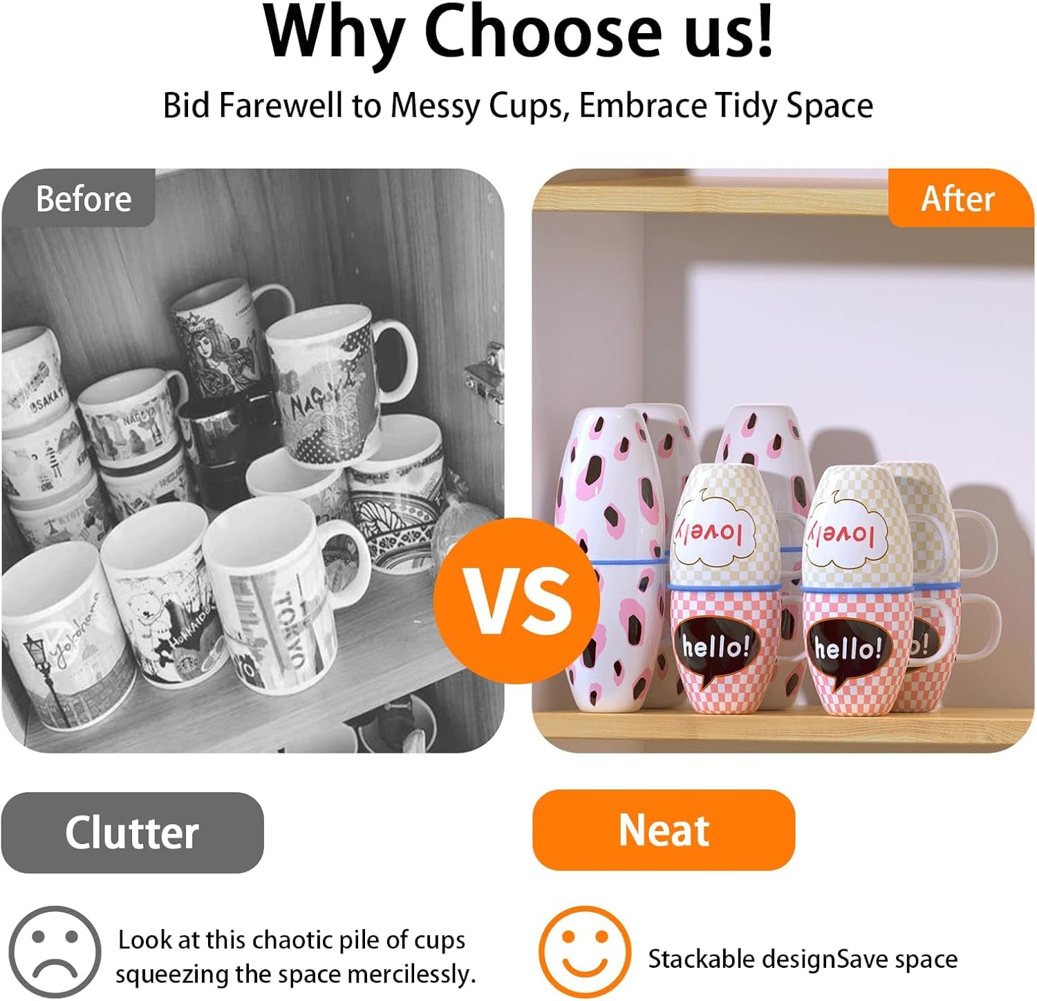 - Compact & Flexible Storage – The Stacker offers an excellent alternative to bulky wire shelving units, providing flexible positioning while using minimal space. Perfect for corner cabinets, spice racks, or pantries, it’s a great option for anyone seeking a tidy, efficient way to organize their mugs without clutter
