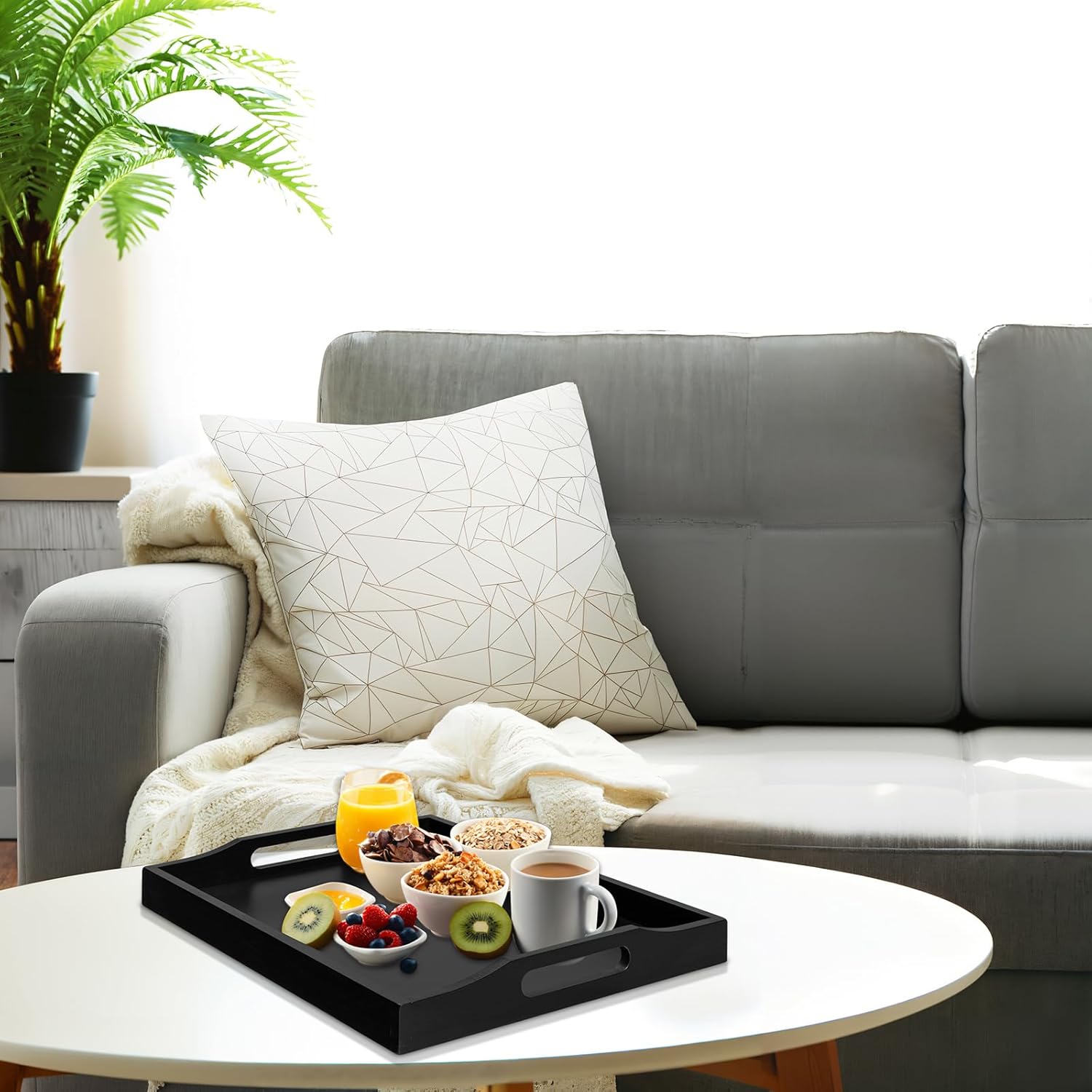 - Multipurpose Appetizer Serving Tray : Large serving trays serve food and drinks, breakfast in bed, bed tray store and organize all of your daily essentials, whether you're looking for decorative trays for coffee table, ottoman, vanity counter, our decorative tray makes a wonderful gift for any occasion