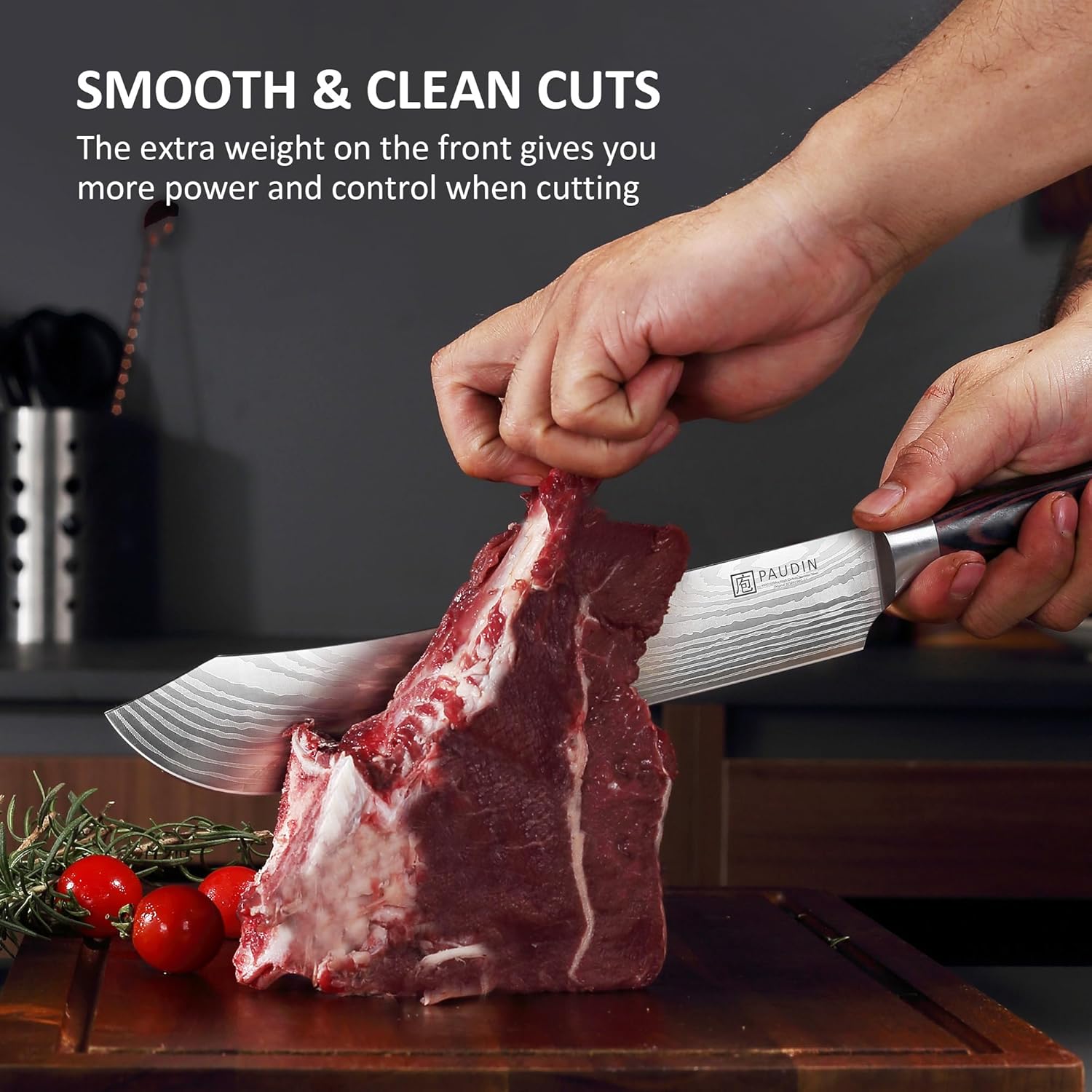 PAUDIN Butcher Knife, 10″ Bullnose Brisket Knife,Forged High Carbon German Steel, Ultra Sharp Edge for Meat Cutting, Ergonomic Handle Design