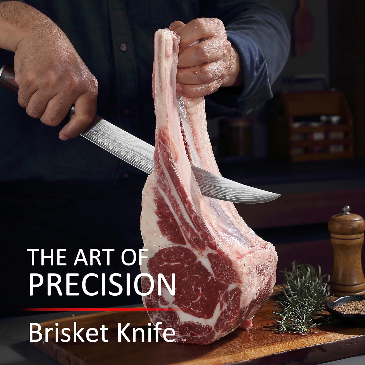 - Razor-Sharp Edge: Precision-forged at 56+ Rockwell hardness and hand-polished for unmatched sharpness, this slicing knife ensures clean, precise cuts through meat, bones, and cartilage from beef, pork, poultry, and more.