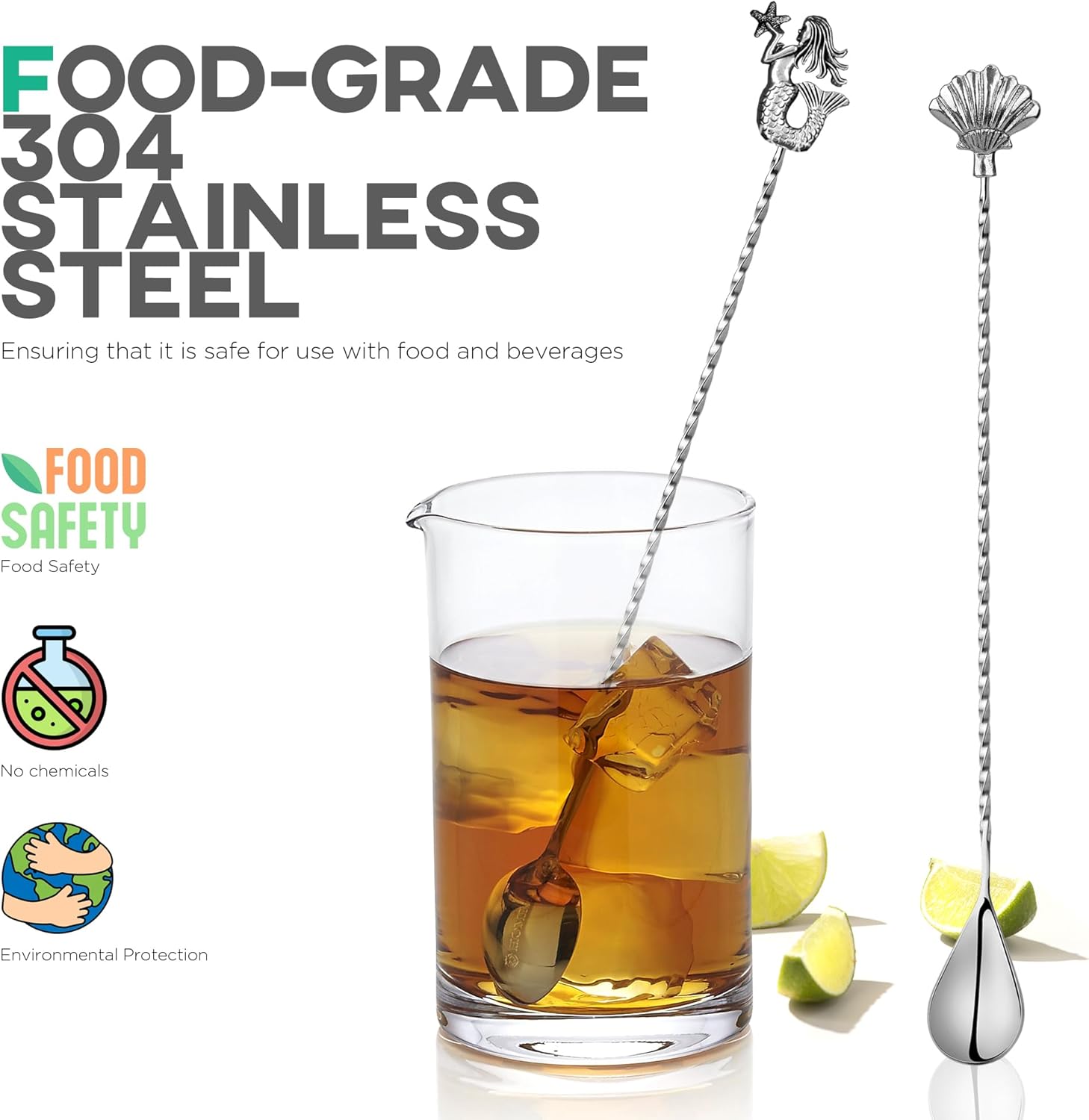 - Smooth & Spiral Handles: Our smooth long handle spoon stirs comfortably without any unwanted friction on the hand. The spiral bartender spoon provides extra grip to glide effortlessly around your mixing glass, chilling your drinks.