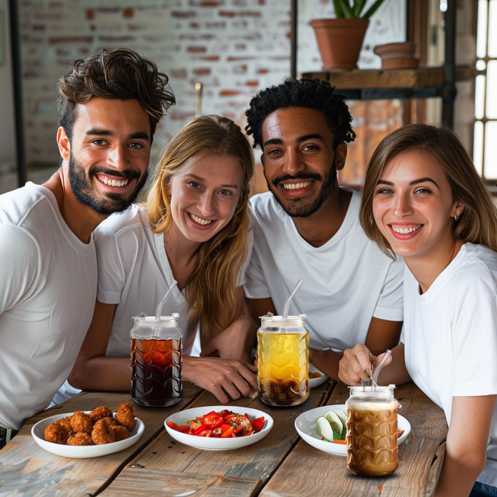 - Drinking Glasses Set Of 4:This glass cups set includes 4 beautiful glass cups with straws and lids, 4 secure plastic lids, 4 sturdy glass straws and 2 straw cleaning brushes. You can enjoy a great drinking experience at home or on the go. Easy Cleaning and Maintenance:Designed with convenience in mind, these drinking glasses are easy to clean, saving you time and energy. Simply rinse or place in the dishwasher to ensure the cleanliness of your iced coffee cup.