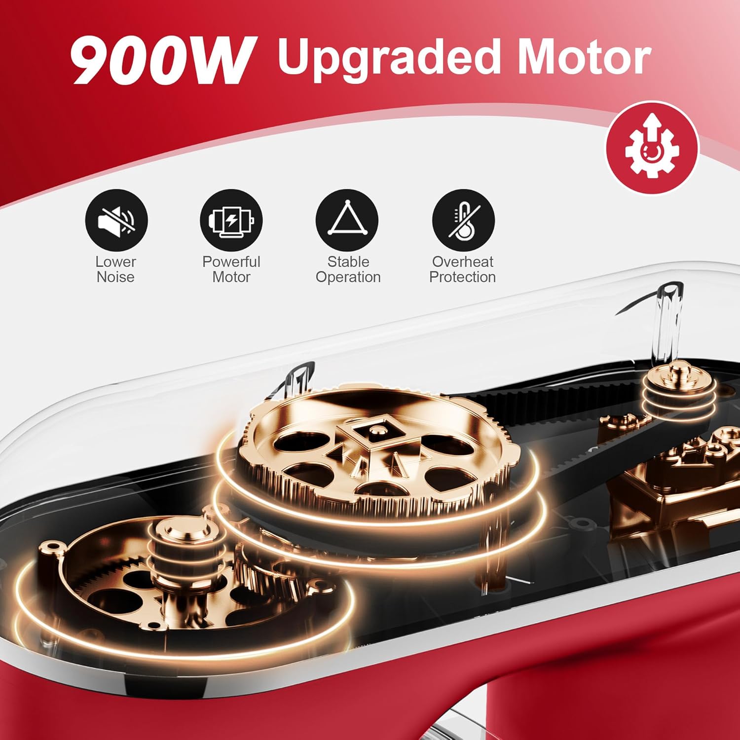 - Powerful 900W Motor-The 900W motor delivers exceptional power, effortlessly tackling thick dough, dense batters, and delicate mixtures. With smooth and consistent mixing performance, this powerful motor ensures that the stand mixer can handle even the most demanding tasks without overheating, offering long-term reliability and efficiency.