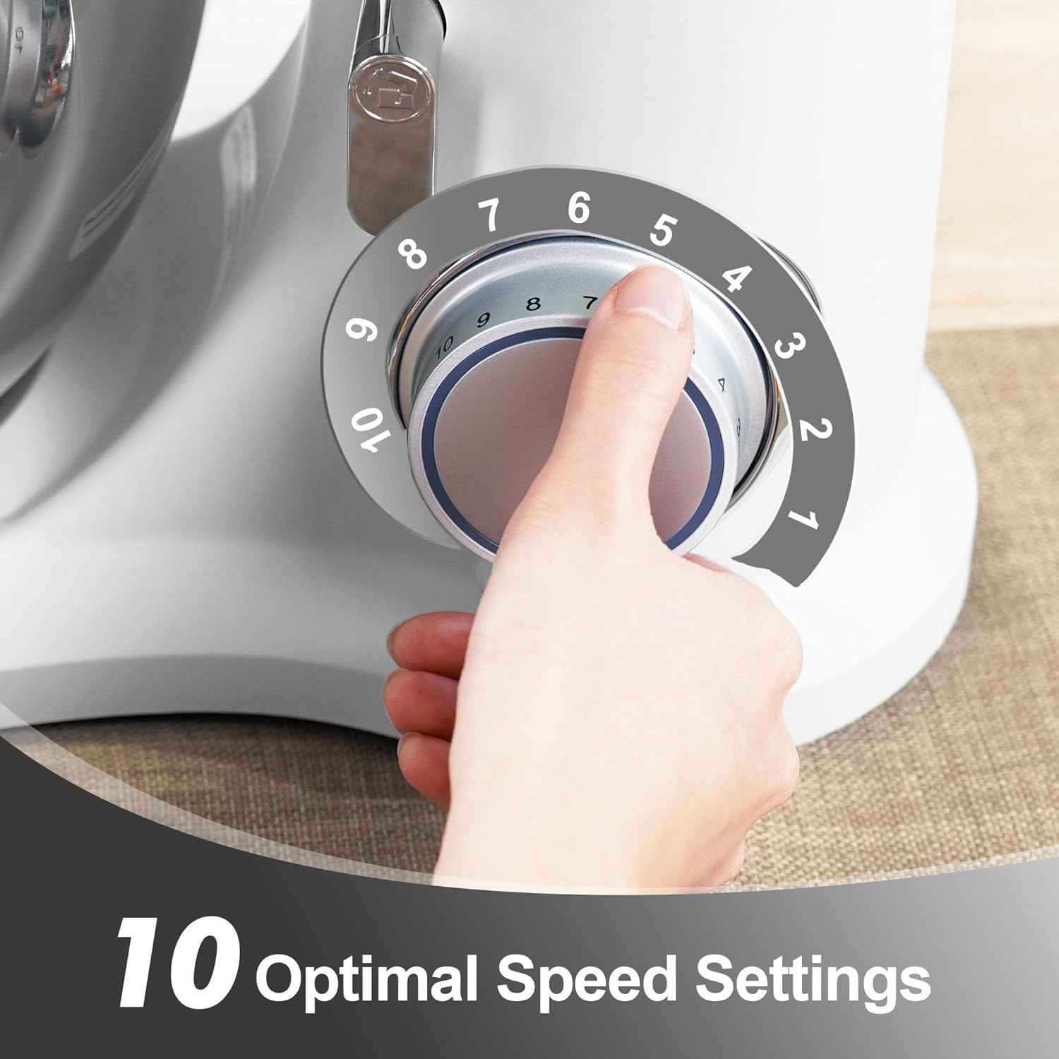 - 10 Adjustable Speeds with Pulse Function-This kitchen electric stand mixer offers 10 adjustable speeds, giving you complete control to fine-tune your mixing for any recipe. Whether you are gently folding ingredients or whipping at high speeds, you can easily adjust the settings to achieve the perfect texture. The pulse function provides an instant speed boost for quick, thorough mixing when needed.