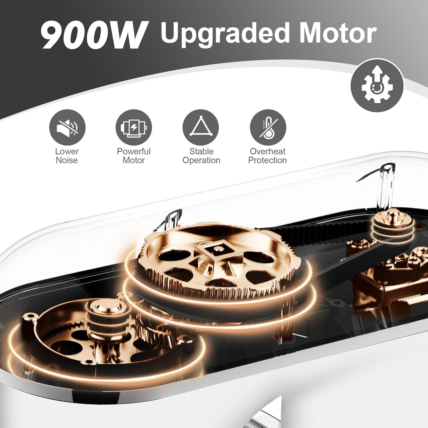 - Powerful 900W Motor-The 900W motor delivers exceptional power, effortlessly tackling thick dough, dense batters, and delicate mixtures. With smooth and consistent mixing performance, this powerful motor ensures that the stand mixer can handle even the most demanding tasks without overheating, offering long-term reliability and efficiency.