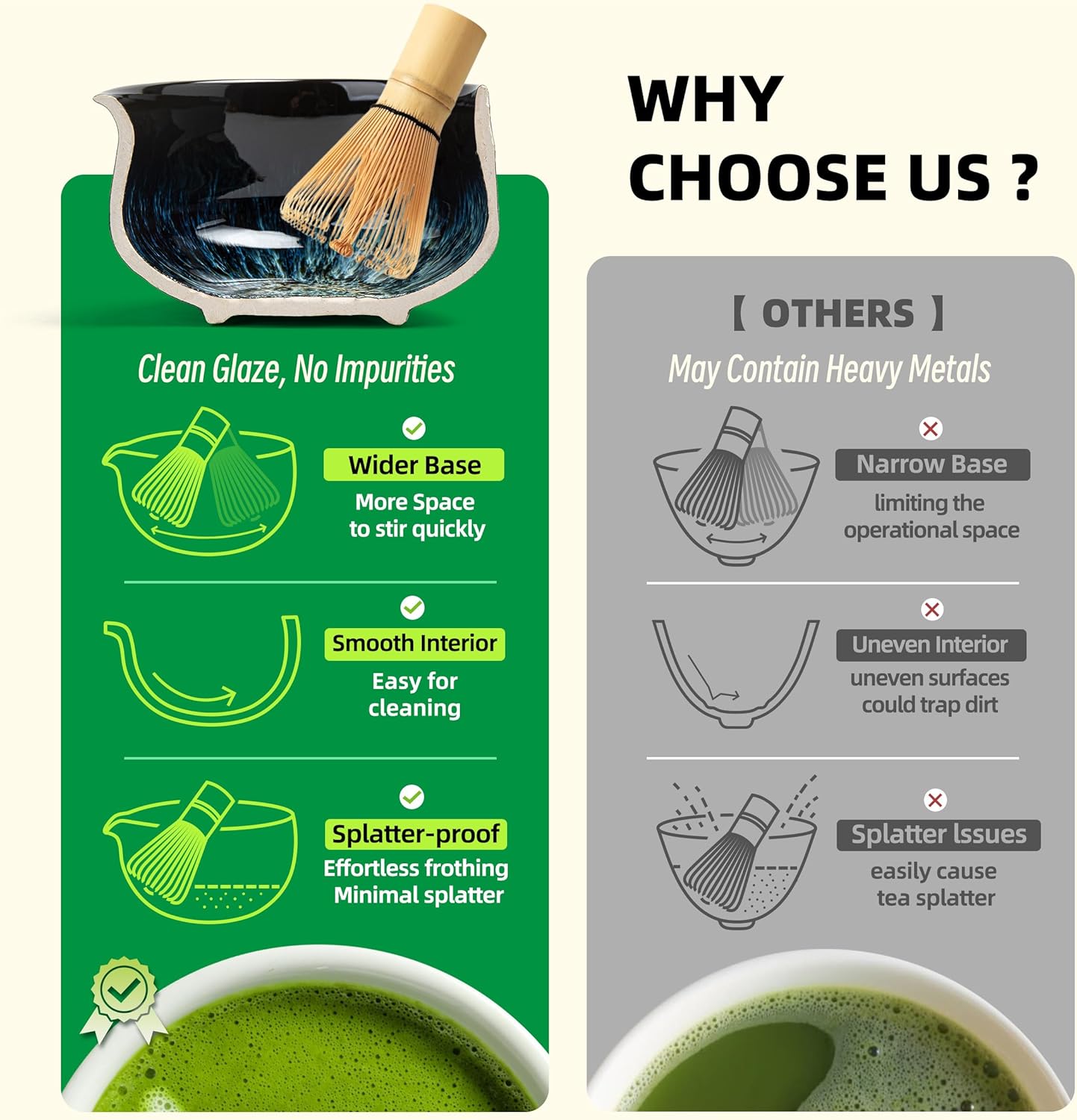- HIGH SAFETY & QUALITY: Our Handcraft Matcha Whisk, About 100 Fine Tines(百本立),100% Crafted From High Quality Bamboo With A Vegetable Oil Finish To Enhance Its Durability. Additionally, Our Ceramic Bowl Has Lead-free And Mercury-free Test Reports.food-grade And Eco-friendly