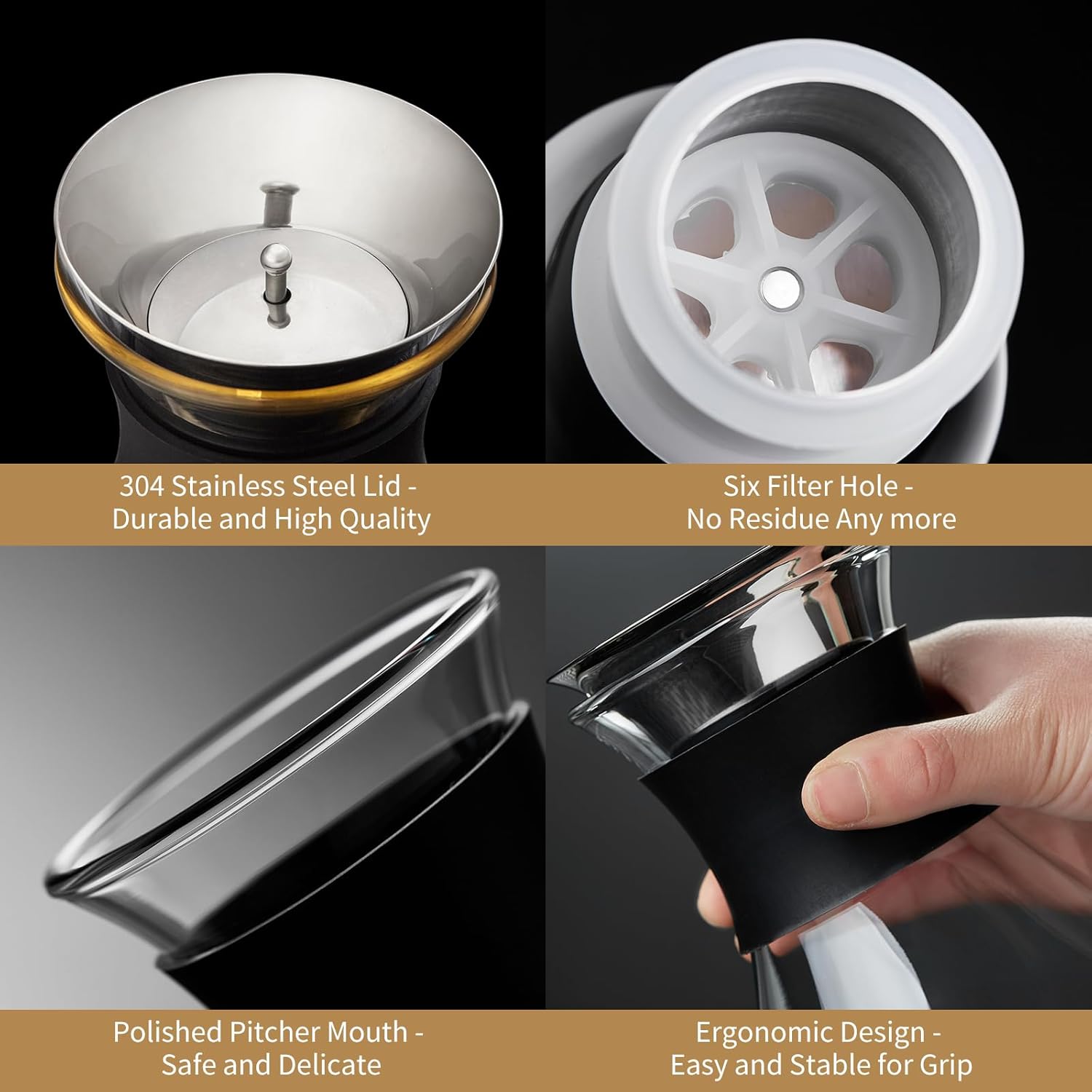 - Ergonomic Bird Beak Spout: Designed with a bird beak spout for precise pouring, this pitcher minimizes spills and drips, ensuring a clean and efficient experience every time