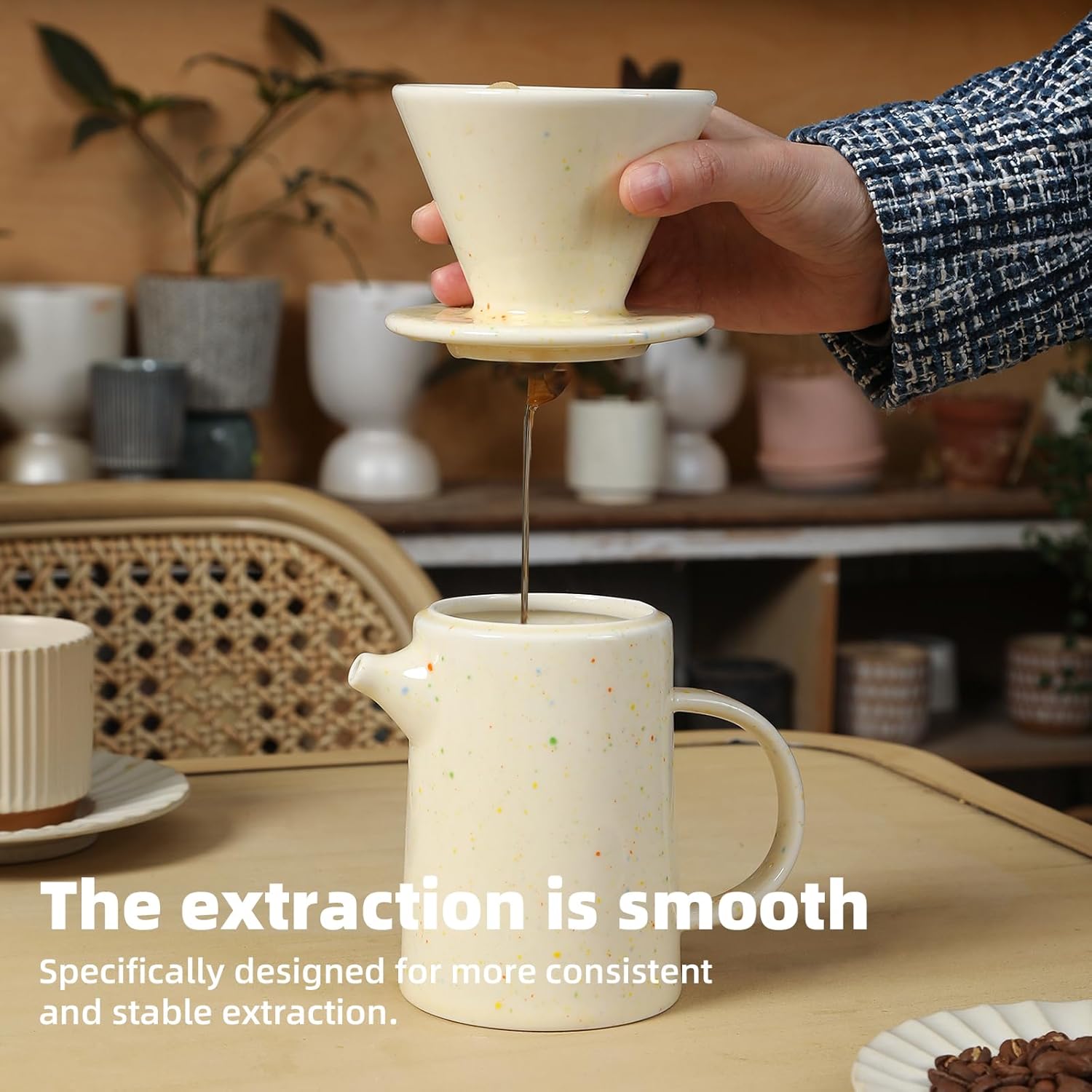 - Perfect Choice for Coffee Lover:This drip coffee set includes 15.8 oz ceramic pot x 1,ceramic coffee dripper x 1,paper filter x 20. This v60 pour over coffee maker is suitable for homes, offices and coffee shops,and it’s a good home decoration.It is also ideal for colleagues, friends,family and coffee lovers.