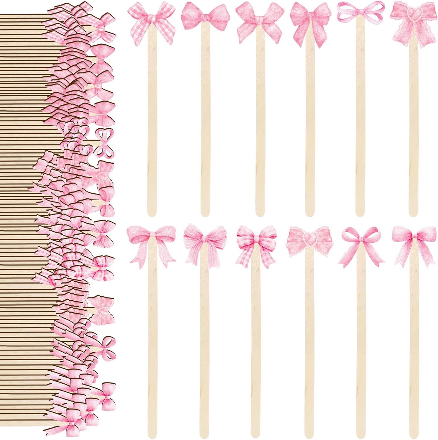 120Pcs Pink Bow Coffee Stirrers Watercolor Multiple Bowknot Disposable Stir Sticks Wooden Drink Stirrers for Home Office Bar Restaurant Party Supplies