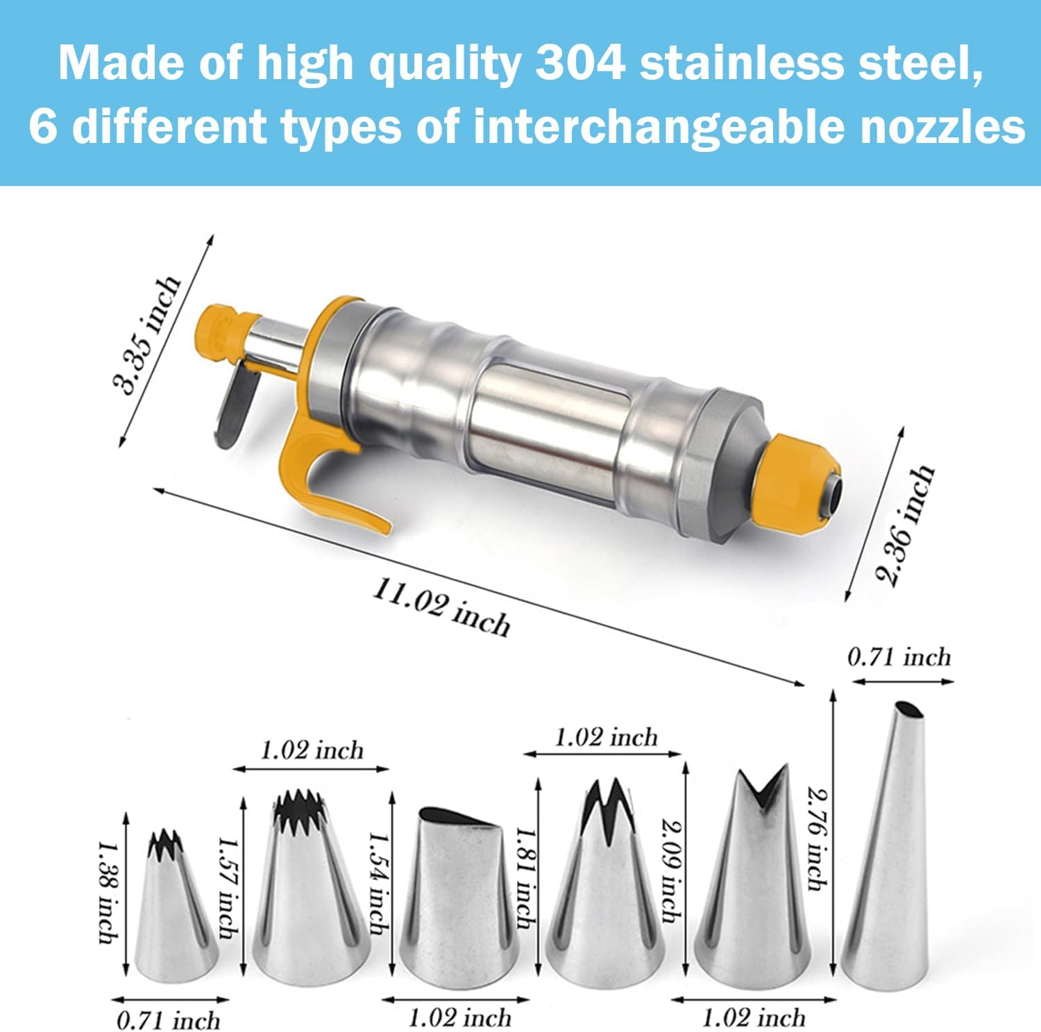 - Make Multiple Patterns: Our icing gun kit has 6 different types of interchangeable nozzles, you can easily create more interesting patterns on your cakes or cookies with cupcake decorating supplies