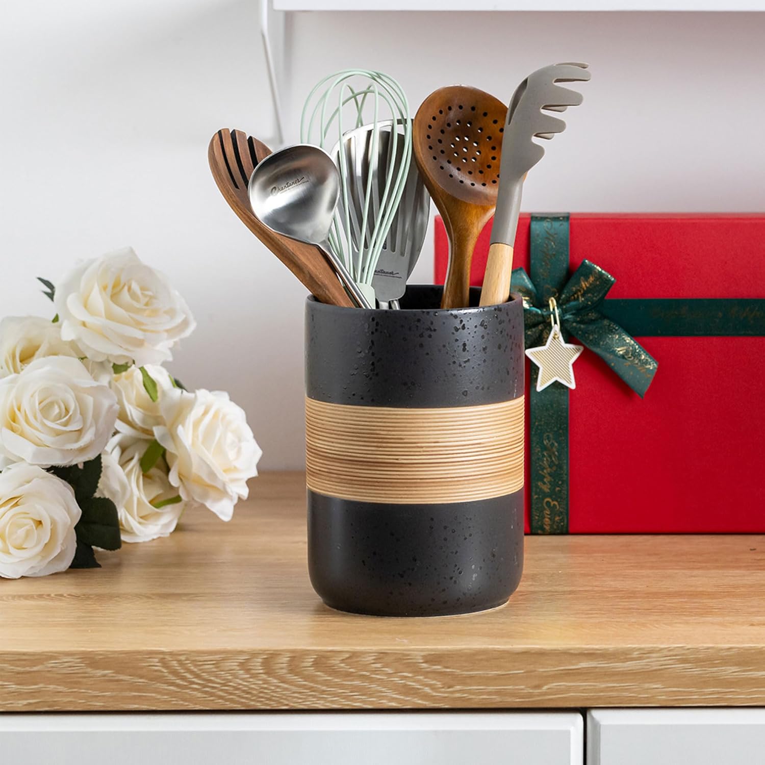 Large Storage Containers with Lids, Ceramic Coffee Container Kitchen Food Storage Jars for Spice Sugar Tea Bag, Stackable Decorative Jars for Counter, Black & 61 fl.oz