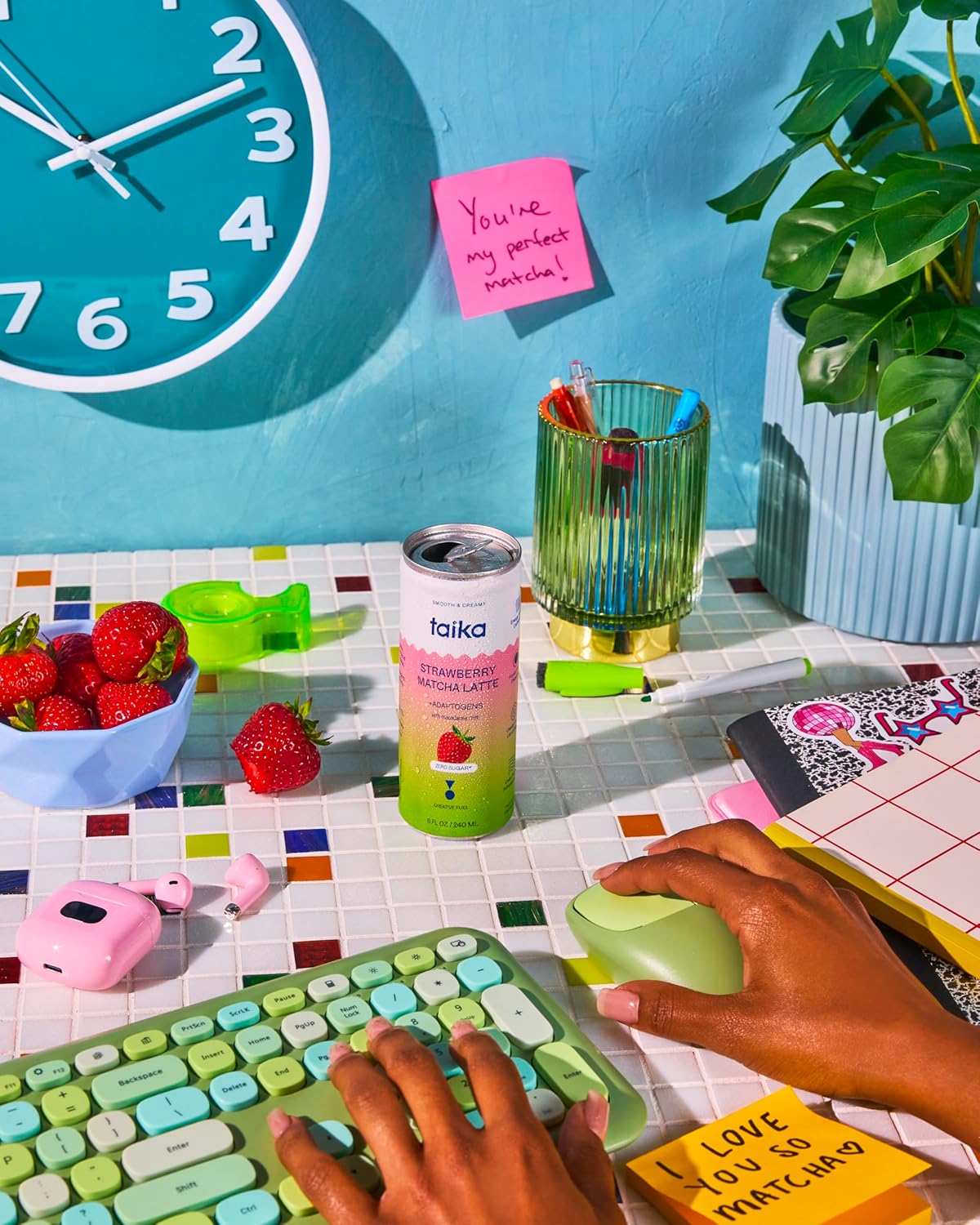 Taika Strawberry Matcha Latte - Ready to Drink Hot & Cold Brew Strawberry Matcha Latte in Cans - Organic Ceremonial Grade Matcha w/Ashwagandha, Lions Mane, & L-Theanine - 8 Fl Oz (Pack of 12) (8 Fl Oz (Pack of 12), Strawberry Matcha Latte)