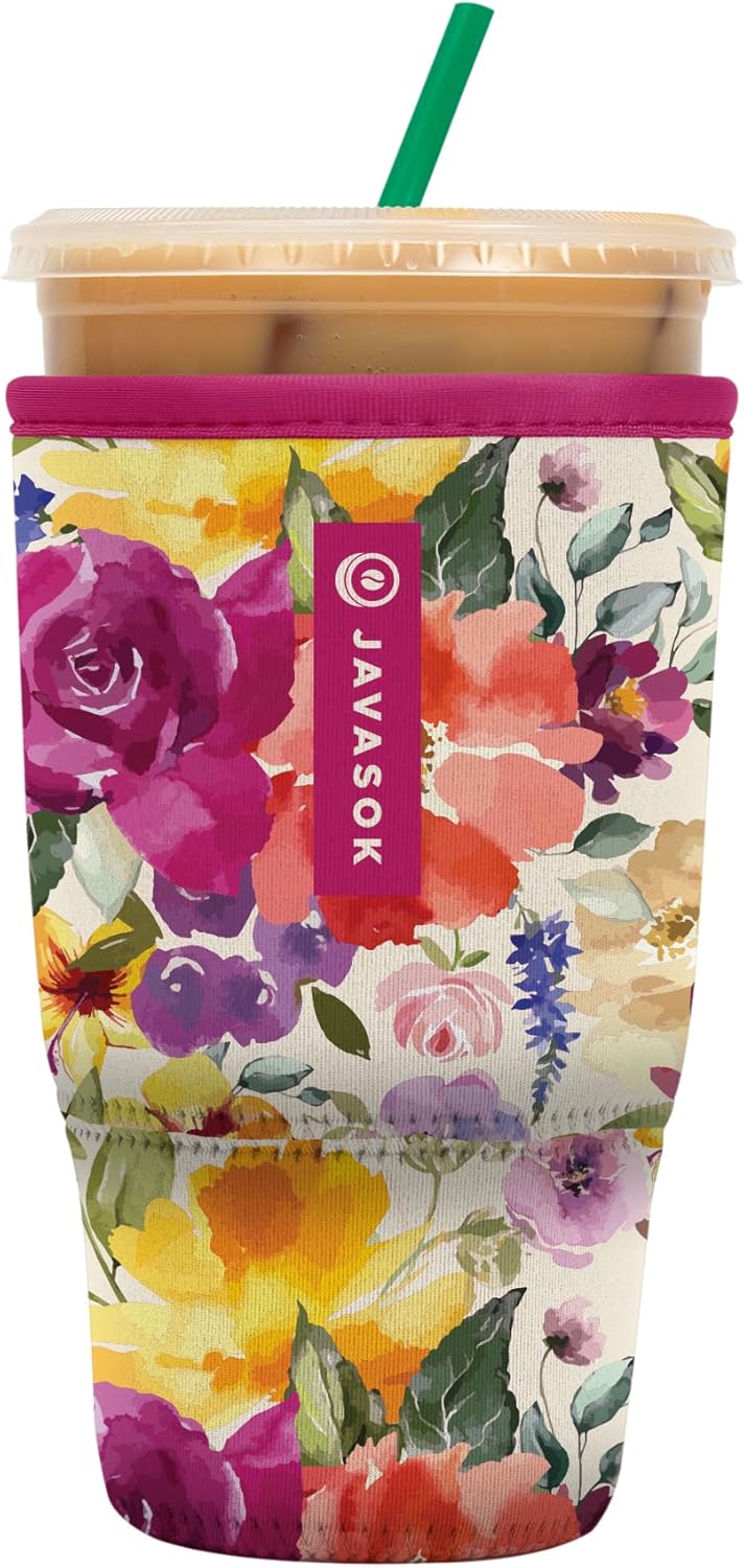 Sok It JavaSok Iced Coffee & Cold Soda Insulated Neoprene Cup Sleeve (Blooming Bright, Large: 30-32oz)