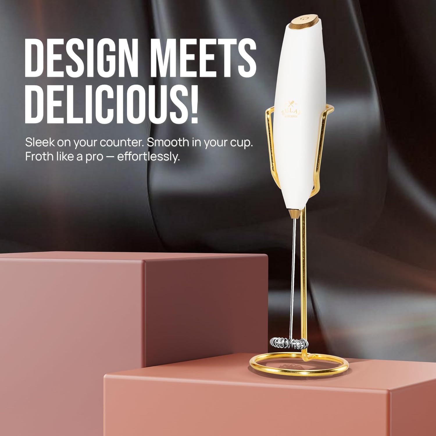 Zulay Kitchen Executive Series Luxury Gift Milk Frother with 4 Duracell Batteries – Handheld Electric Foam Maker for Coffee, Lattes & Hot Chocolate – Deluxe Finish, Ultimate Gift for Coffee Lovers
