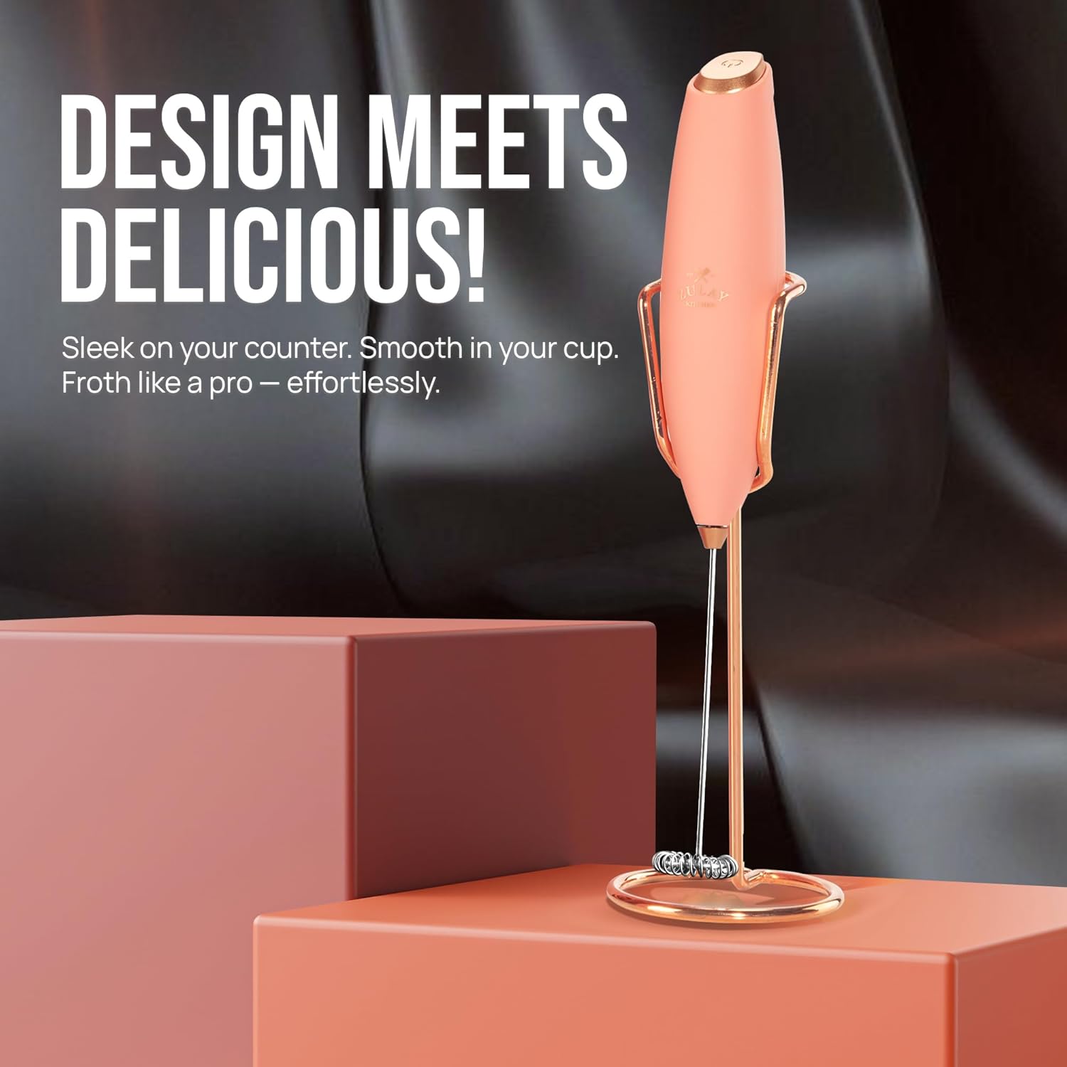 Zulay Kitchen Executive Series Luxury Gift Milk Frother with 4 Duracell Batteries – Handheld Electric Foam Maker for Coffee, Lattes & Hot Chocolate – Deluxe Finish, Ultimate Gift for Coffee Lovers