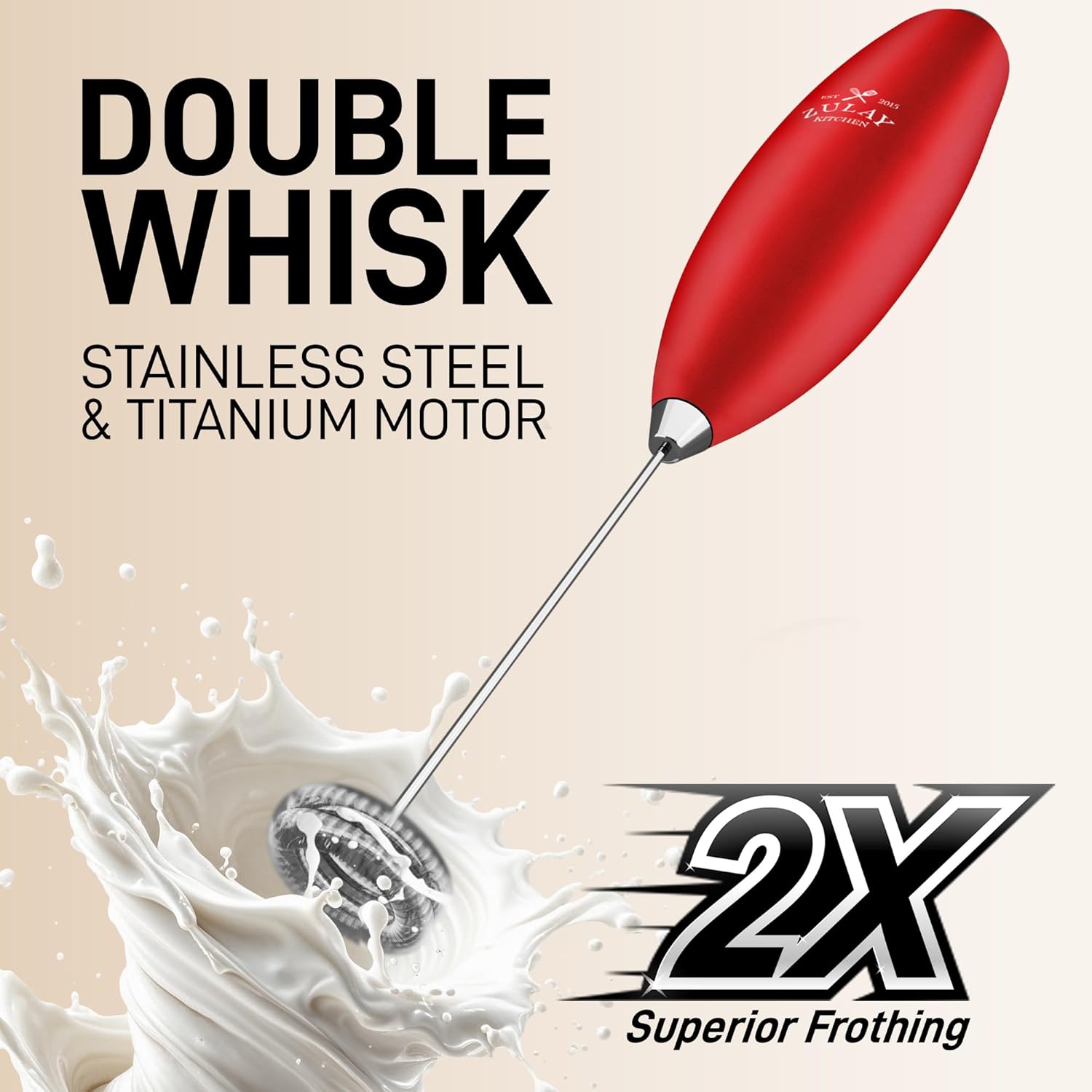 Zulay Kitchen Whisk Milk Frother with 4 Duracell Batteries - Powerful Handheld Foam Maker for Coffee, Lattes, Matcha, Hot Chocolate & Cappuccinos - Whip Creamy Froth in Seconds
