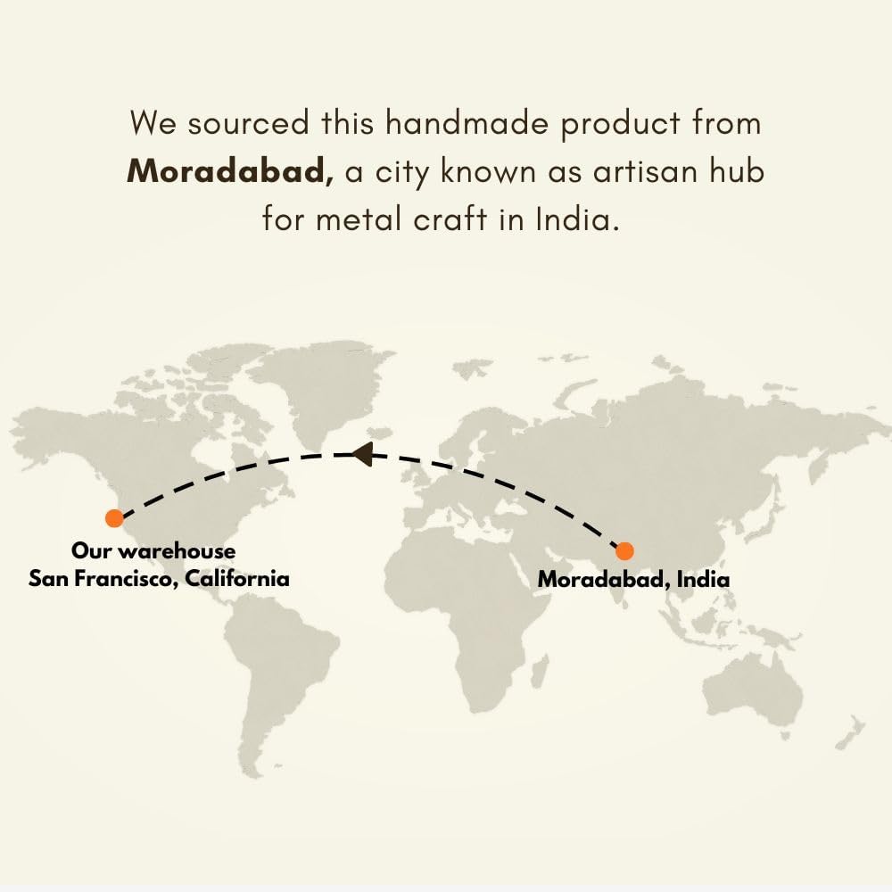 - Crafted by traditional metal artisans of Moradabad. Moradabad is the largest metalware hub of India.