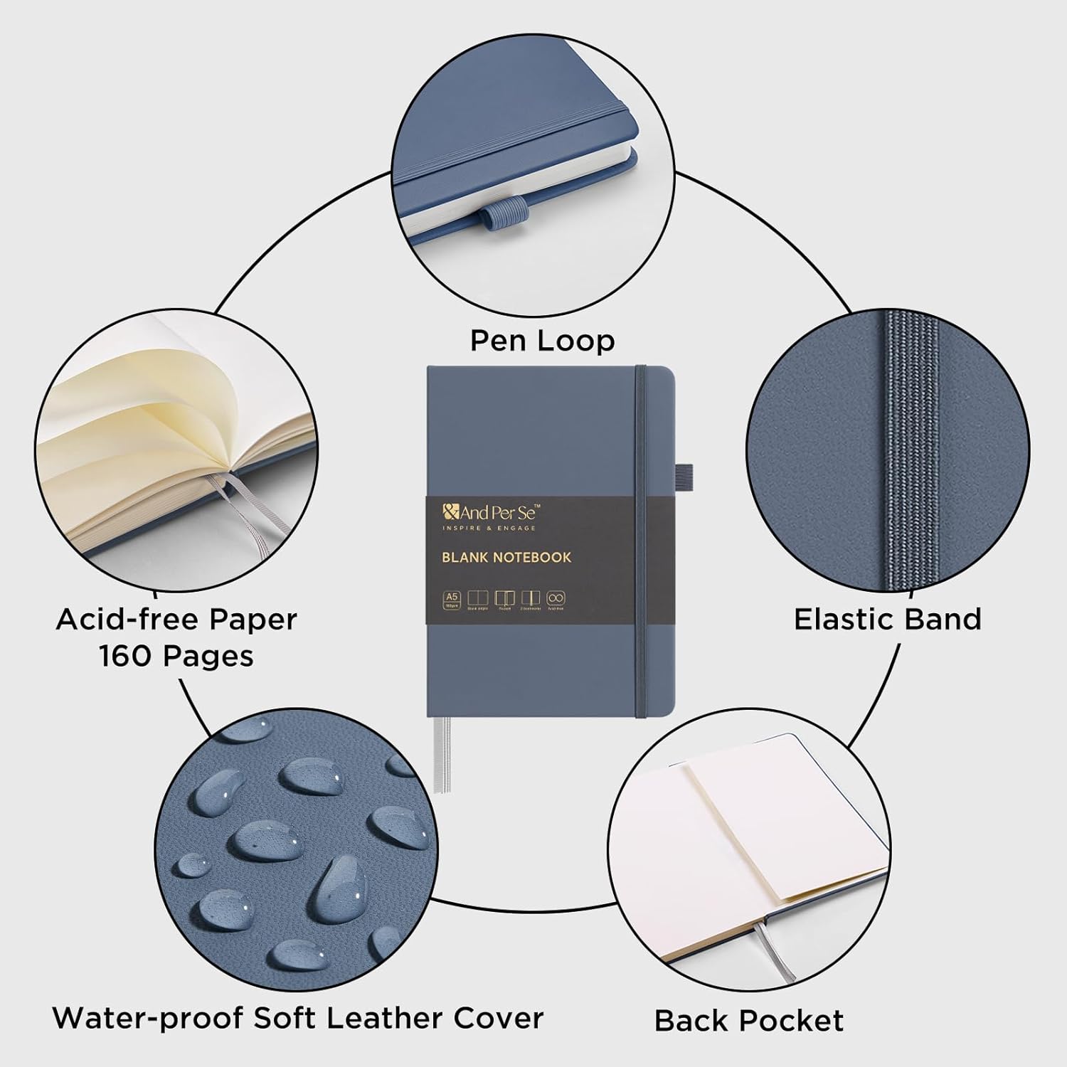 &And Per Se Blank Journal Notebook, 160 Pages, 5.7 x 8 inches College Ruled Thick Paper Notebook Journals for Writing, Hardcover Notebook(1 Pack, dark blue)