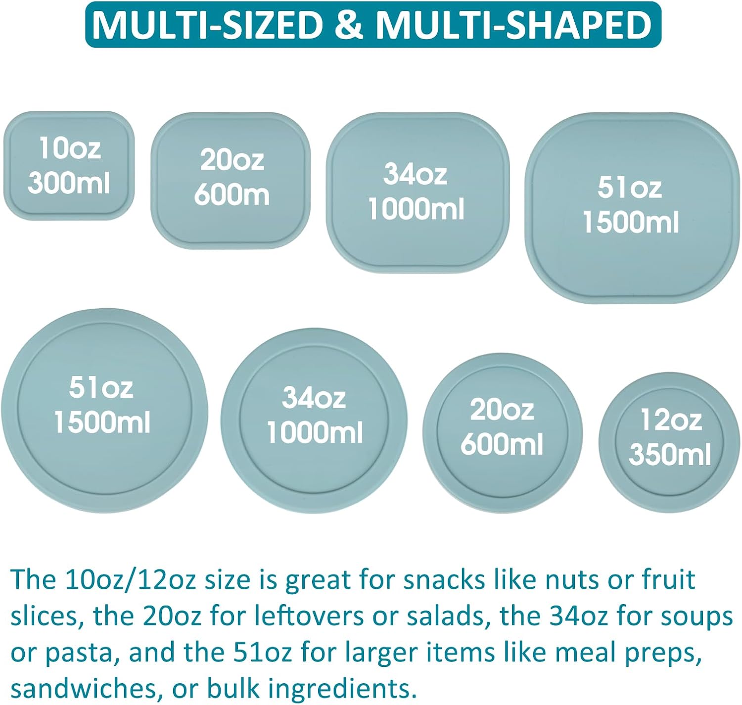 - 【LEAK PROOF】Crafted entirely from premium silicone and adopting a unique sealing method, the lid securely attachs to the containers, guaranteeing a leak-proof seal that preserves your food's freshness for an extended period. You don’t have to worry about spills everywhere even if they’re filled with soup and get jostled or shaken along the way during travel