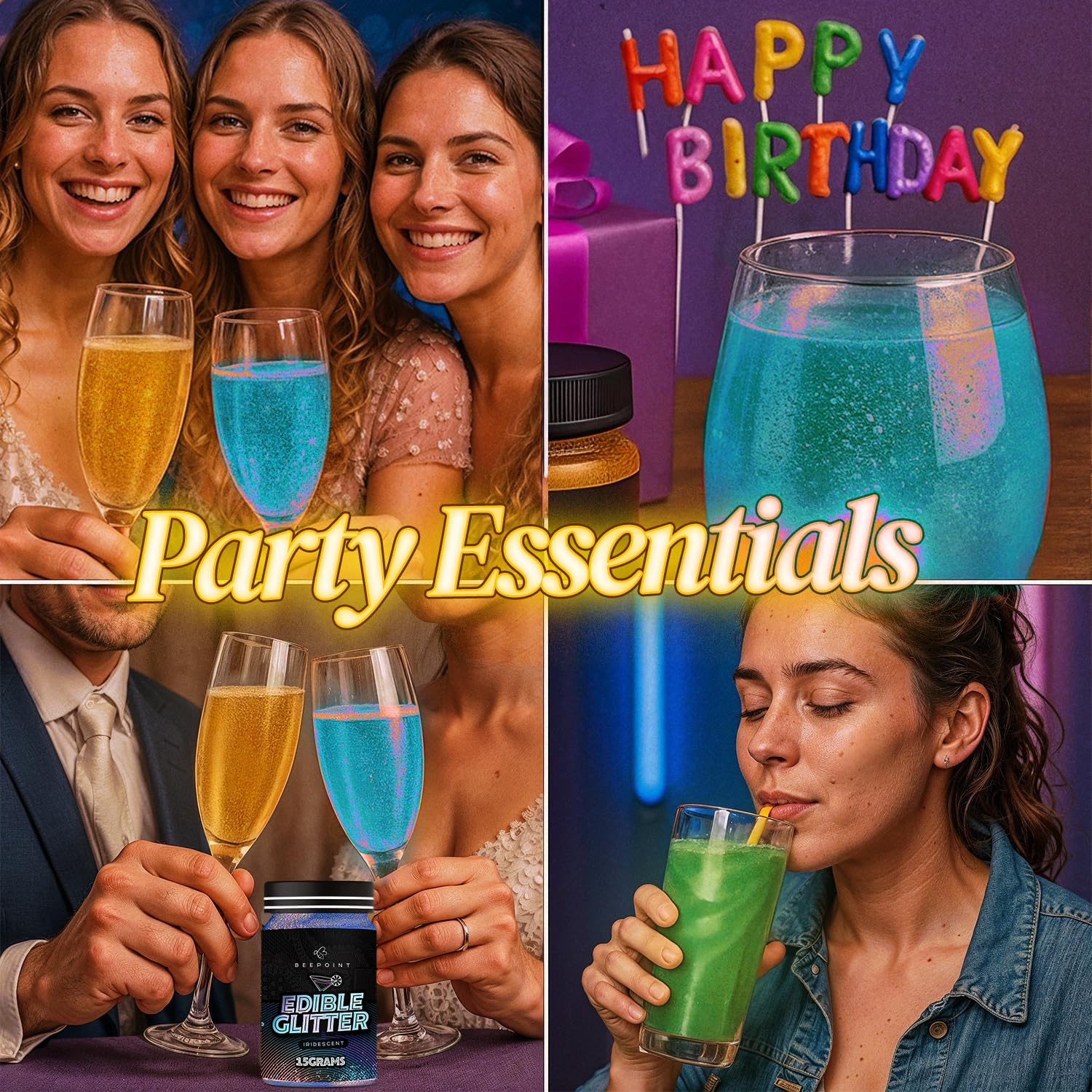 BeePoint Iridescent Edible Glitter for Drinks 15g - Food Grade, Vibrant Color Shimmer Powdered Dust for Drinks, Cocktails, Cake Decorating, Baking, Chocolates, Candy, Sweets, & Cookies - Vegan & Gluten Free