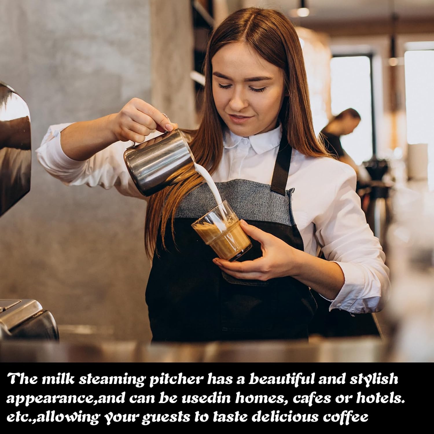 - Quality 304 Stainless Steel Material: made from quality 304 stainless steel, this milk pitcher for espresso machine is designed to last; Durable and corrosion resistant, it withstands frequent use and cleaning, making it a reliable addition to any kitchen or coffee shop