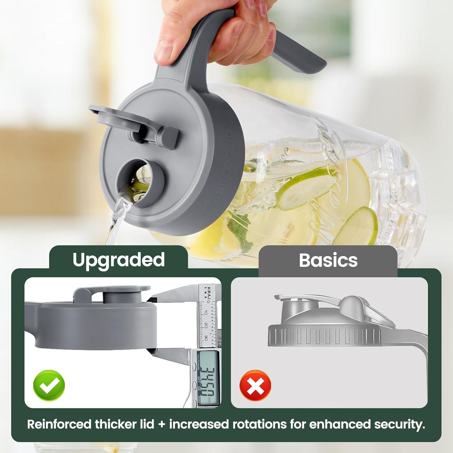 - Effortless Pouring Glass Pitcher with Lid: Enjoy effortless pouring with the wide-mouth flip-cap spout and non-slip handle. Say goodbye to unwanted spills and mishaps, as our lid pops open to ensure your content won't leak or spill.