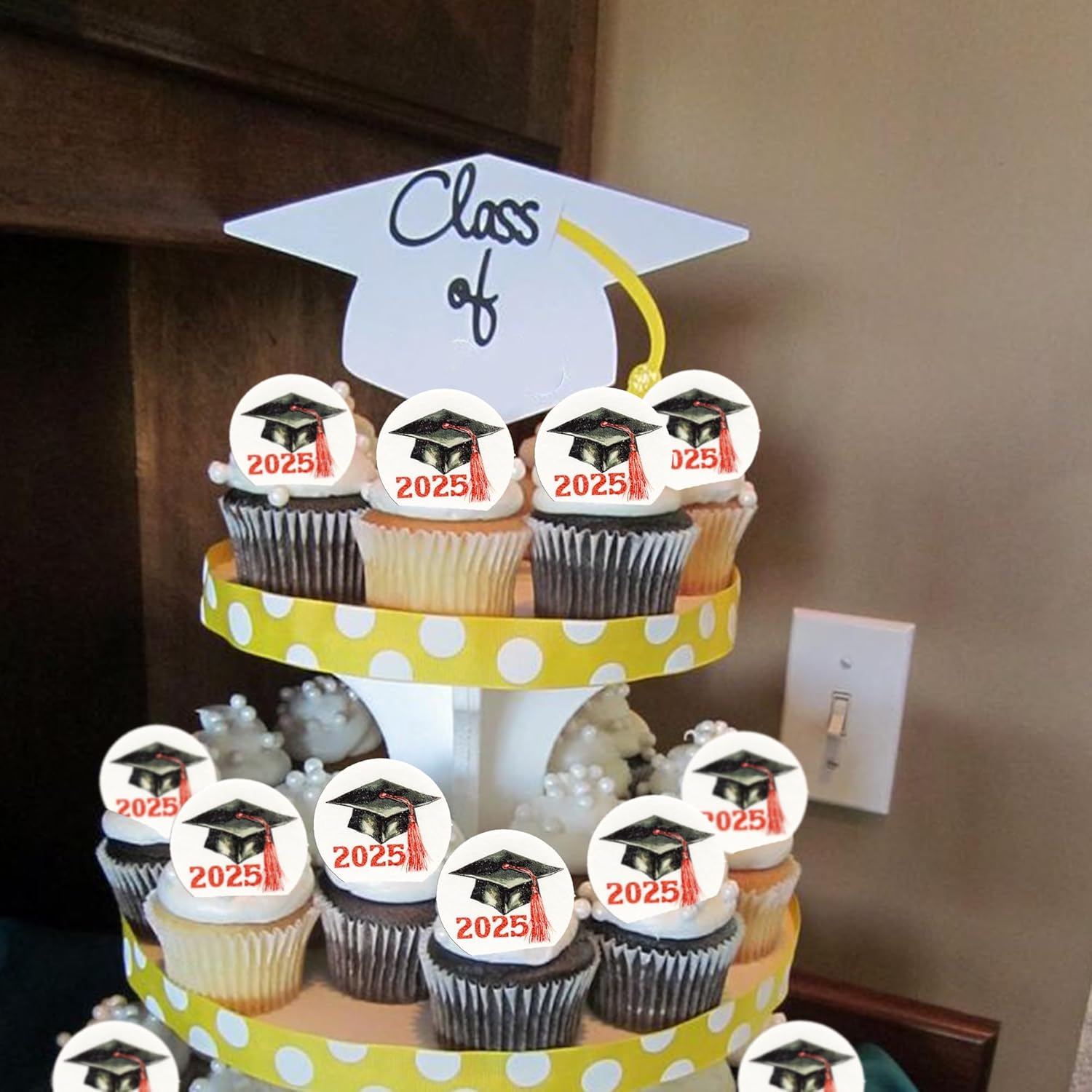 - -Edible 2025 Grad Cap Cupcake Toppers are so cute and good for 2025 graduation theme party cupcake decorations, such as kindergarten, primary, junior, senior high school, college, Master or Ph.D. graduation anniversary theme party, kids birthday party, baby shower party cupcake decorations. They can make your party more attractive and bring the fun to your party.